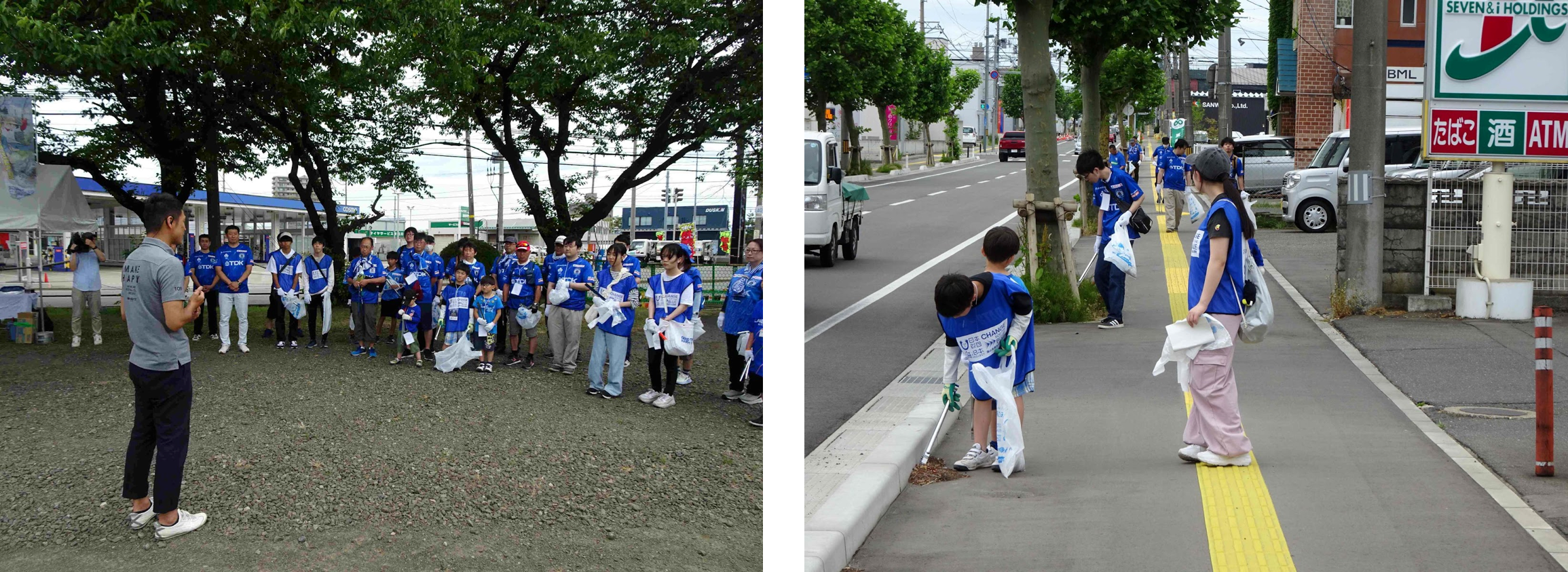 この日の試合は3-1でブラウブリッツ秋田が勝利! ごみを拾い、貴重な勝利も拾いました。試合終了後には、サポーターと一緒にスタジアムの清掃活動も実施しました。