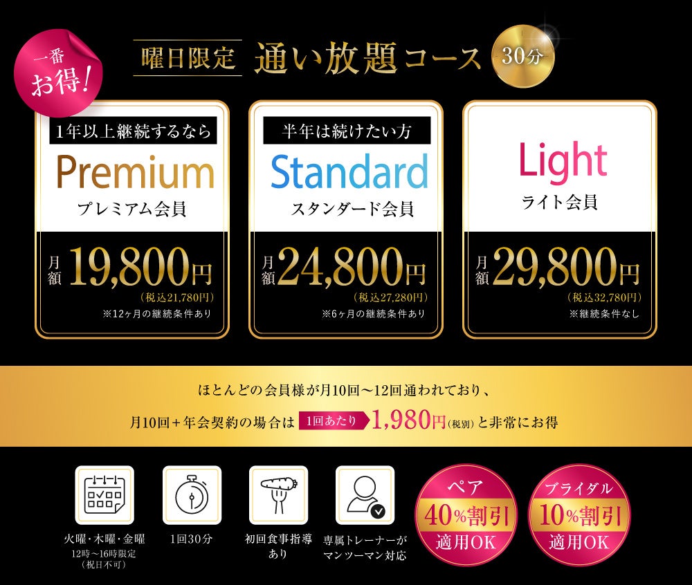 5回/39,600円(税込43,560円)〜 ※VIP会員割引適用時