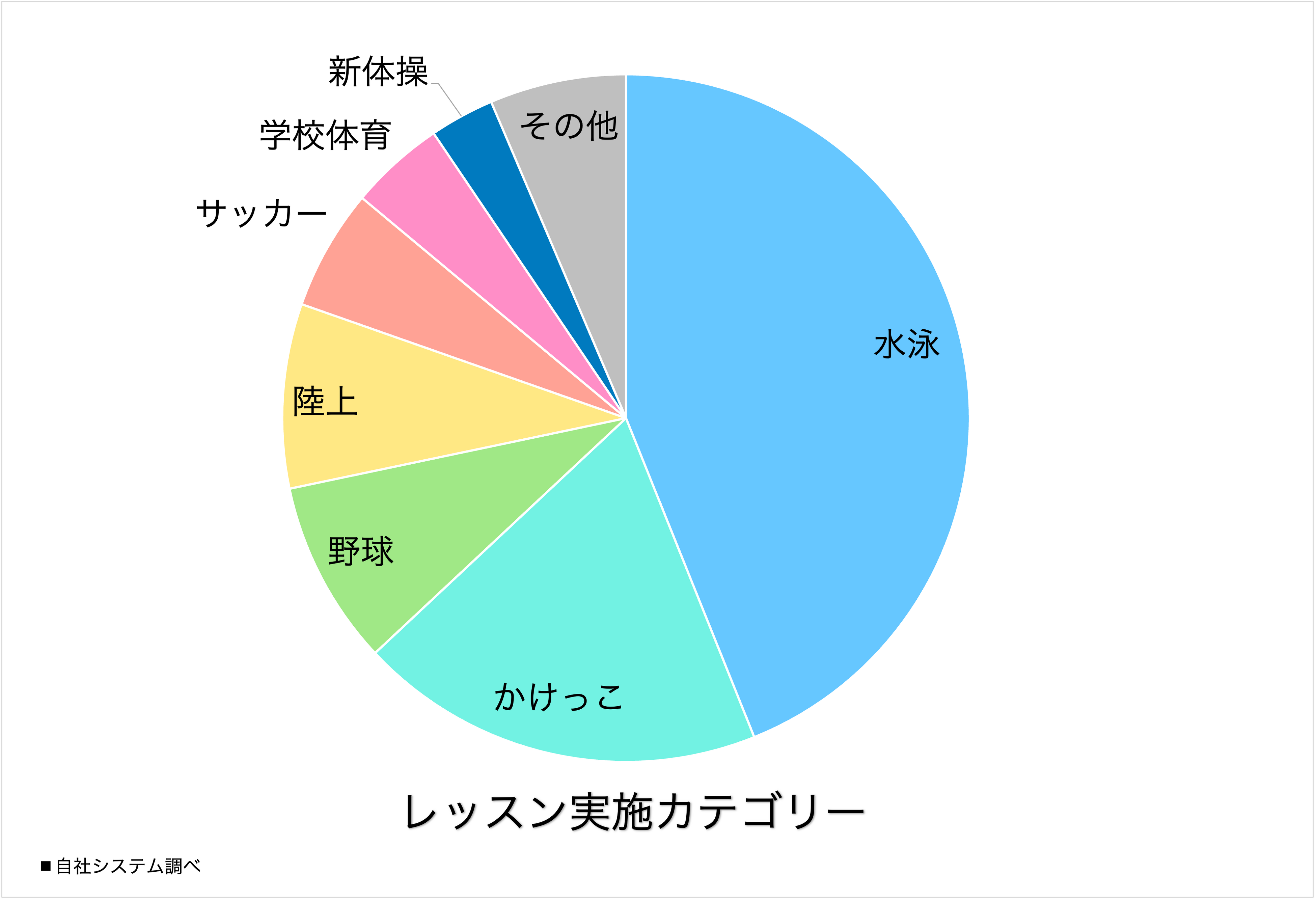 ドリームコーチングで人気の競技は、水泳・かけっこ・野球・陸上・サッカー・学校体育・新体操の順となっています。ドリームコーチングは1回限りのトレーニングも提供していますが、水泳、かけっこ、野球、陸上などの人気スポーツでは、定期的な利用が増えています。