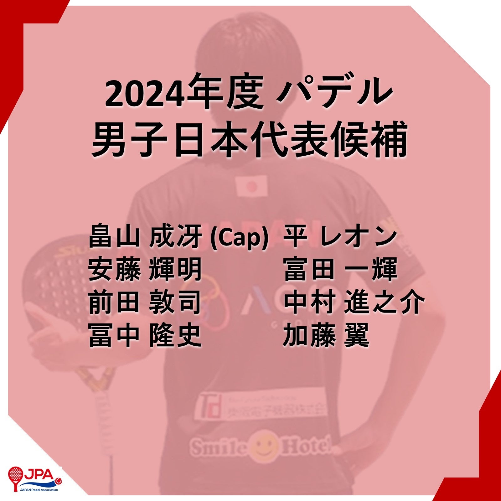 2024年7月1日より、新たに「2024年度 パデル 日本代表候補」選手としてメンバーを選出し、秋に開催予定のアジア予選・世界大会に向けての活動を本格的に始動いたします。「日本代表候補」選手は、2024年2月〜2024年6月末までの国内大会及び国際大会における戦績や強化合宿における評価、日頃の選手としての姿勢など、活動実績を総合的に評価して選出しています。