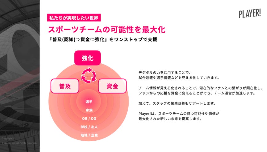 ▶︎事業内容:スポーツコミュニティアプリ「Player!」および「Player! WHITE」の開発・運営、スポーツ情報インフラの開発・運営