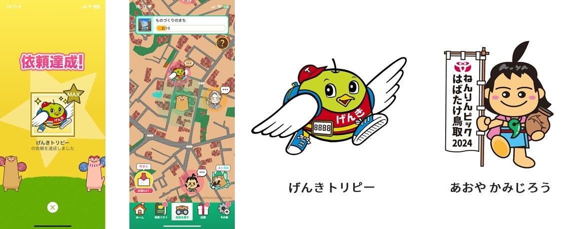協賛イベント「ねんりんピック ウォーキング on aruku&」開始に先駆けて、7月1日から8月31日までaruku&に鳥取県の健康づくりのシンボルキャラクター「げんきトリピー」が登場します。すでにaruku&上に登場している大会PRキャラクター「あおや かみじろう」とともに、「ねんりんピックはばたけ鳥取2024」を盛り上げます。