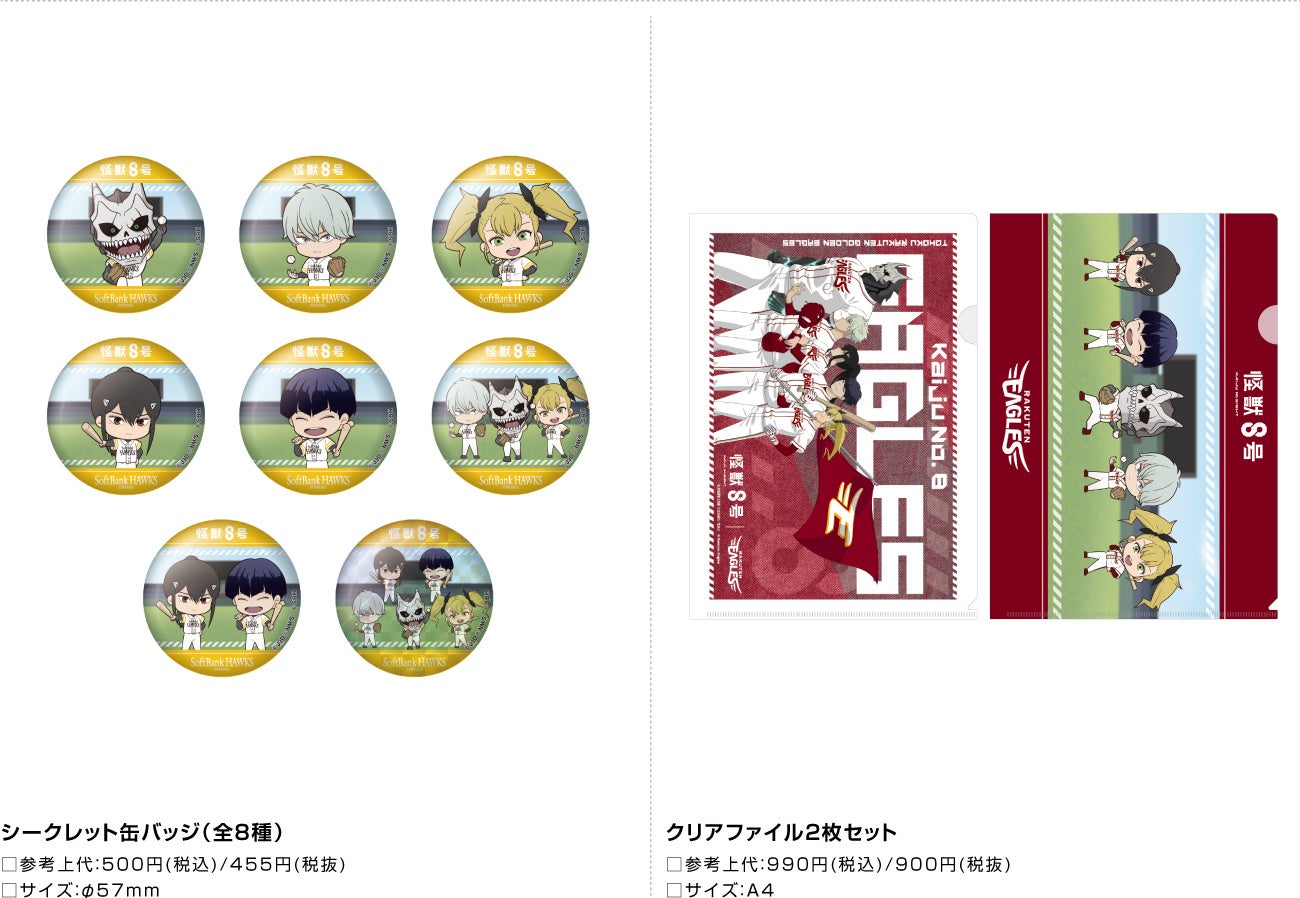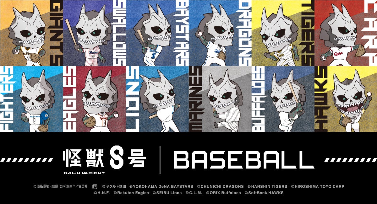 キャラクターがミニマムサイズになったデザインは怪獣8号が球団ごとに異なるポーズをとっています。隊員たちの可愛らしいビジュアルも注目です。