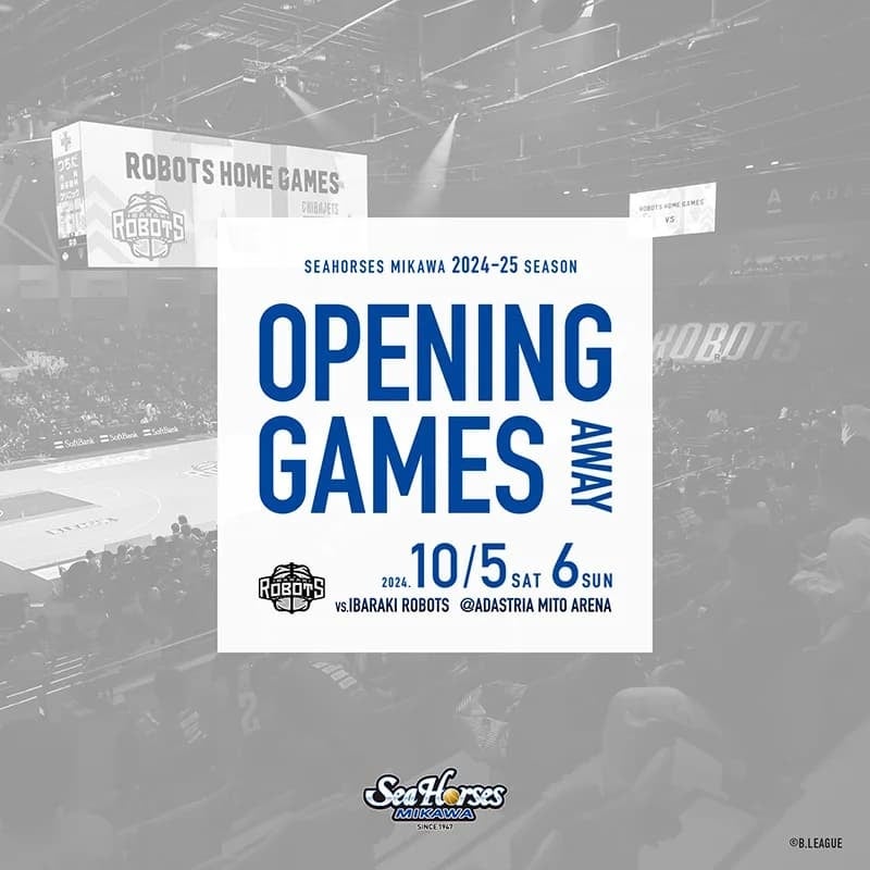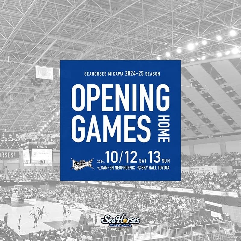 シーホース三河の開幕戦は10月5日(土),6日(日)のアウェー・茨城ロボッツ戦、ホーム開幕戦は10月12日(土),13日(日)の三遠ネオフェニックス戦となります。