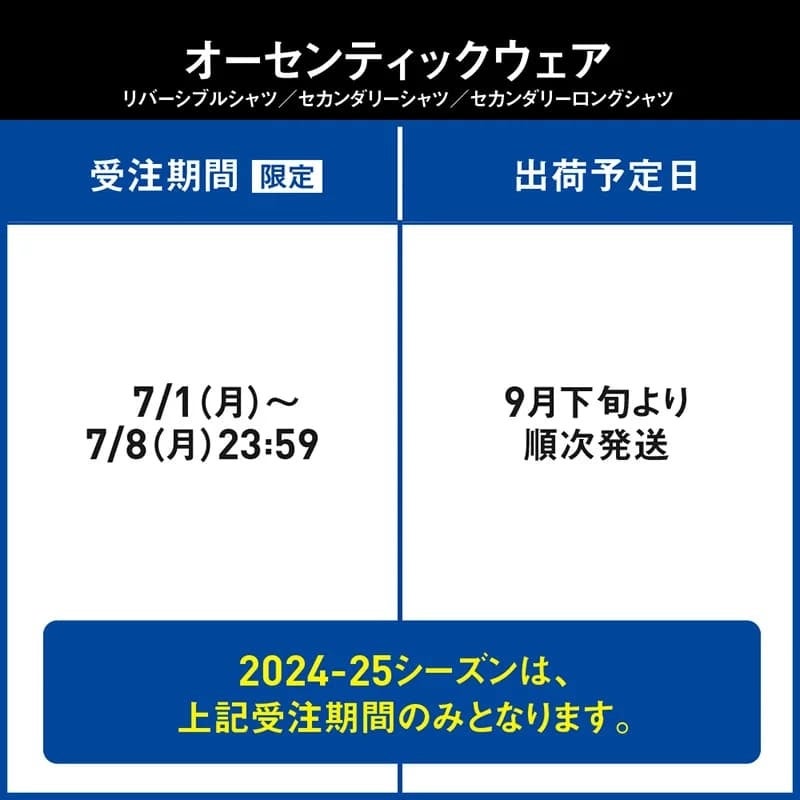 この度、公式オンラインショップで、2024-25シーズンのオーセンティックウェアの受注販売を開始します。