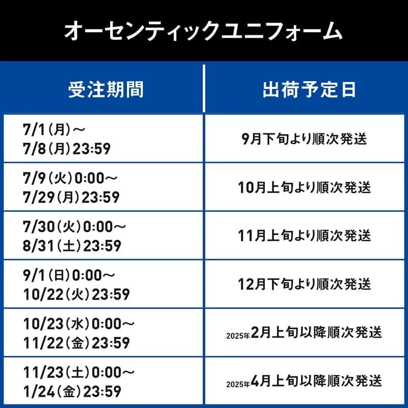 ※ オーセンティックユニフォームと、その他オーセンティックウェアの受注期間が異なりますのでご注意ください。