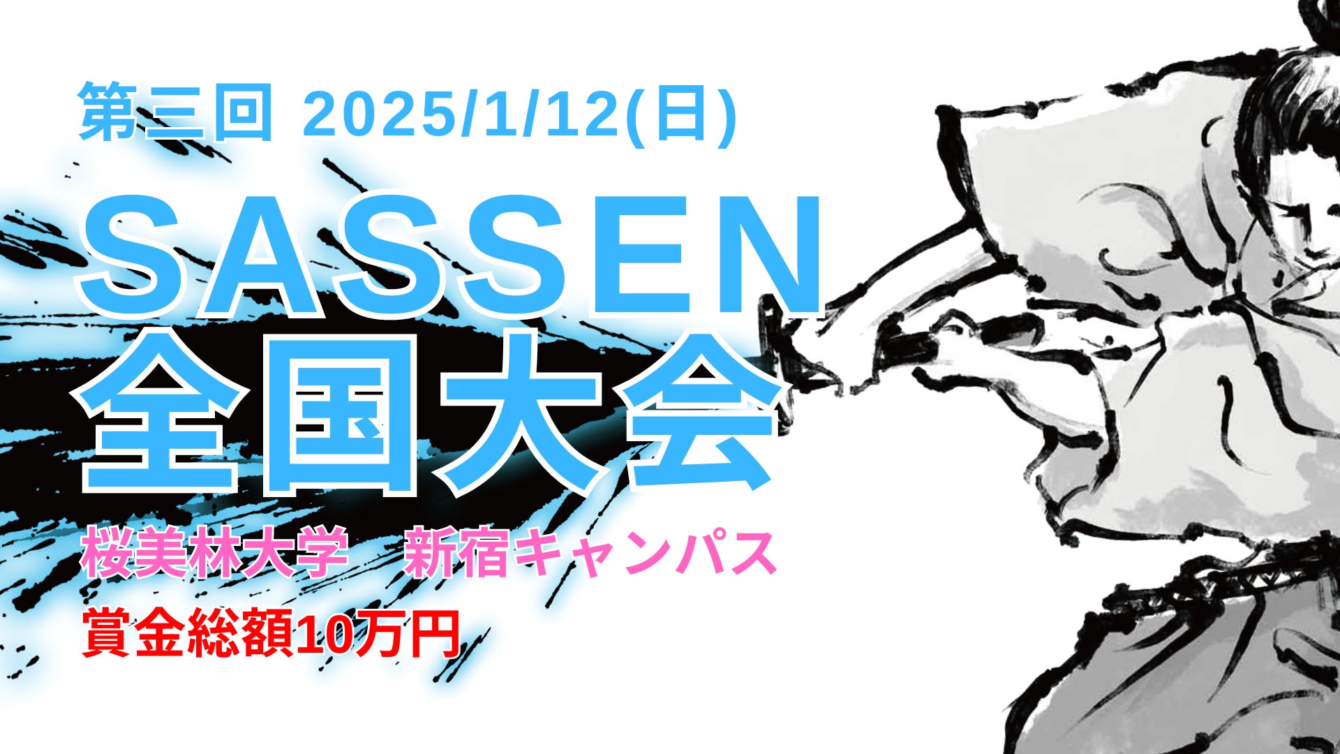 一般社団法人・全日本サッセン協会は、2025年1月12日(日)に第三回 次世代デジタルチャンバラSASSEN全国大会を開催することを正式に発表いたします。本大会は、桜美林大学 新宿キャンパスにて行われ、日本全国のSASSENプレイヤーが集まり、競技を楽しむ予定です。