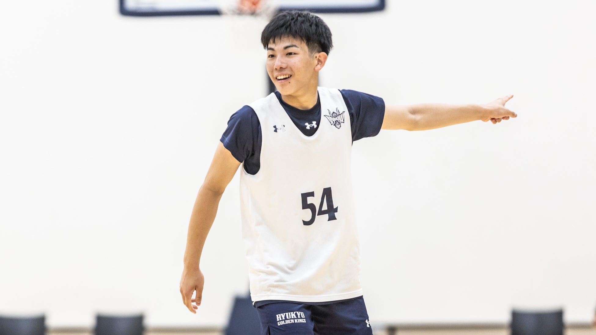 福岡U18との初戦は3年生が気負い過ぎてしまい、自分を含めて少し硬くなってしまいました。7月にある沖縄アリーナでの試合では、前からアグレッシブにディフェンスして、トランジションからのレイアップや3ポイントシュートをどんどん決めて、会場が盛り上がるような試合をしたいです。個人としては、去年はあまり打たなかった3ポイントシュートや切れのあるドライブで得点を奪いたいです。1対1の得点力が伸びてきているので、今シーズンは自分がエースとしてチームを引っ張りたいです。