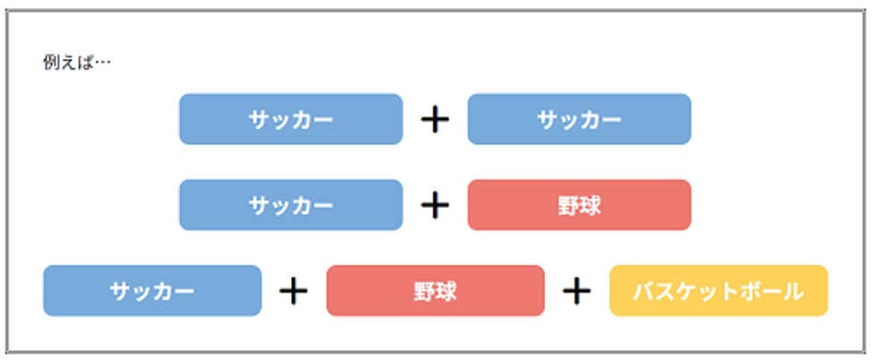 当社スポーツスクールが展開している全13種目のスクールの中から、以下のような組み合わせが可能なコースです。