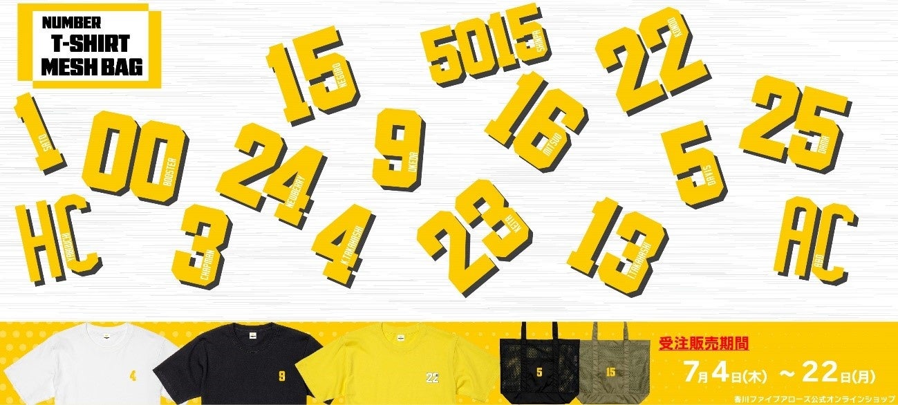 本日7/4(木)18:00よりプレーヤーズグッズ第1弾として選手のネーム&ナンバーをデザインとした「ナンバープリントTシャツ」、「ナンバープリントメッシュトートバッグ」の受注販売を実施しますのでお知らせいたします。