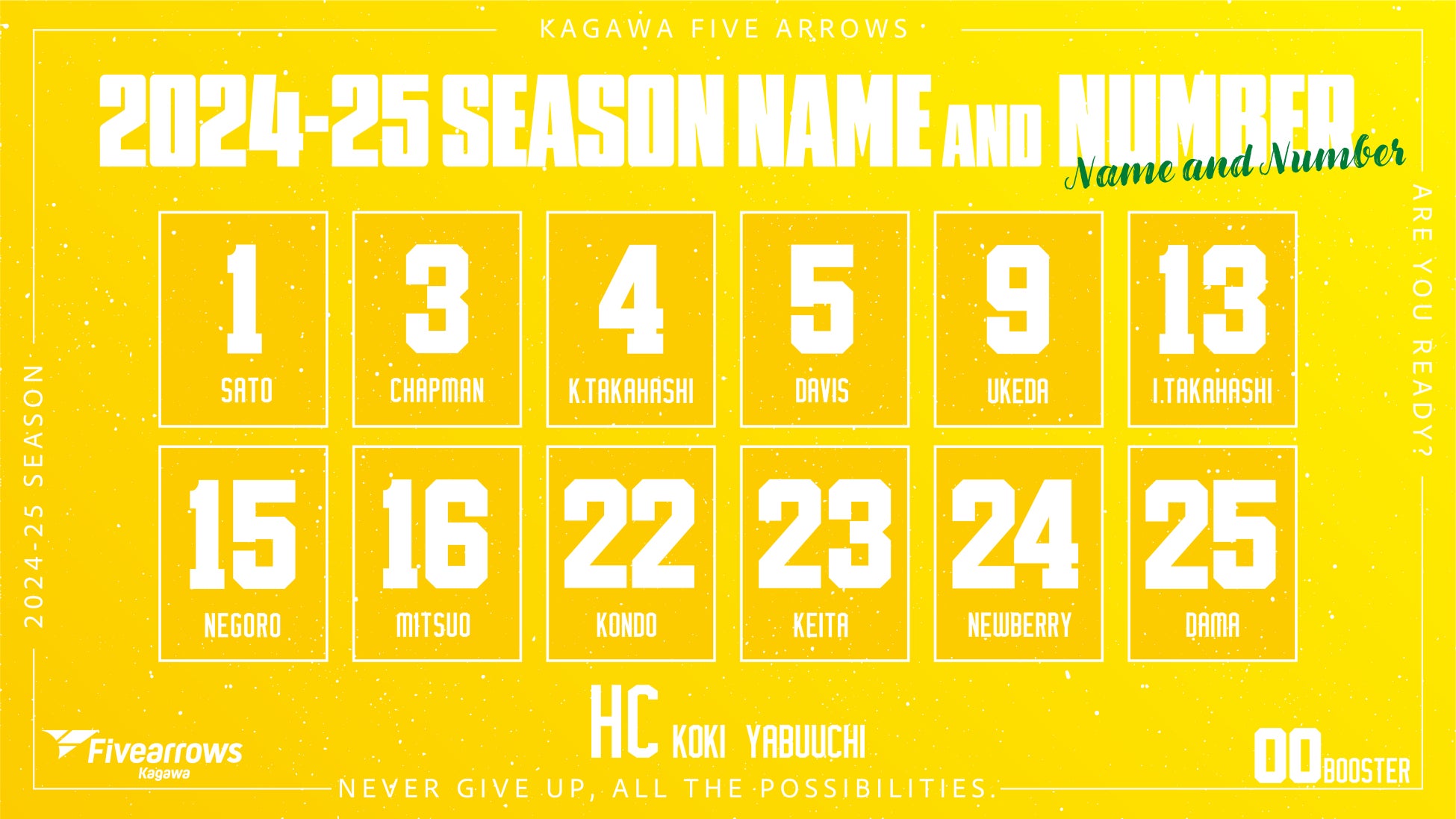 7/4(木)現在までに契約締結をした選手の2024-25シーズンの背番号とユニフォーム表記名が決定しましたので、お知らせいたします。