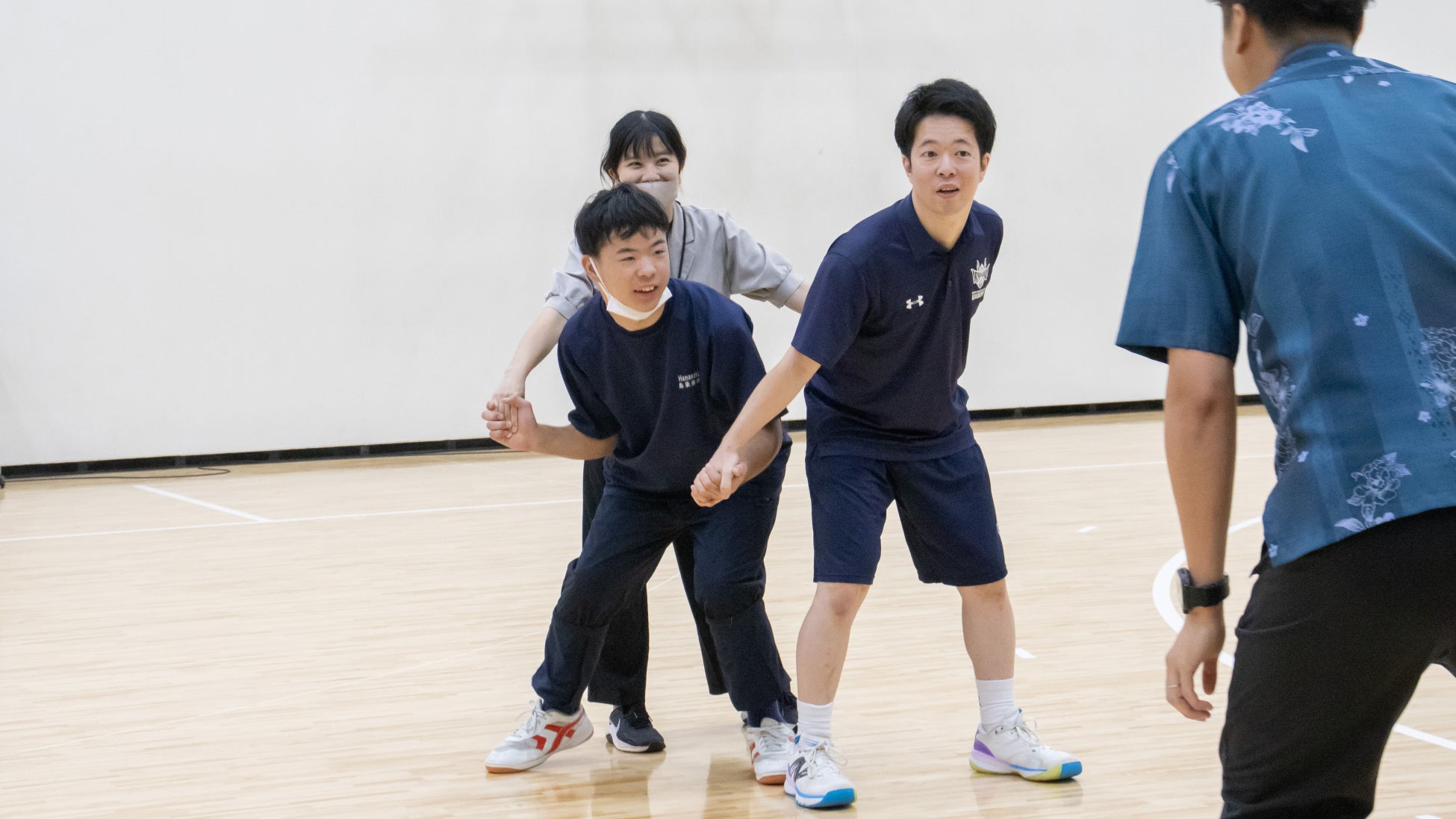 沖縄アリーナ見学では、最上階5階のパノラマラウンジから見るフロアや、スイートルーム見学、2階のキッズコンテンツ体験などを行いました。バスケ交流会では、チームの一体感を高めるを一体化するためのハドルを組んだり、グループでドリブルシュートを行い、行ったりなど、ゴーディーも応援に駆けつけ、生徒たちと交流しました。沖縄アリーナの魅力と、、体を動かすことやバスケットボールの楽しさを体験いただきました。