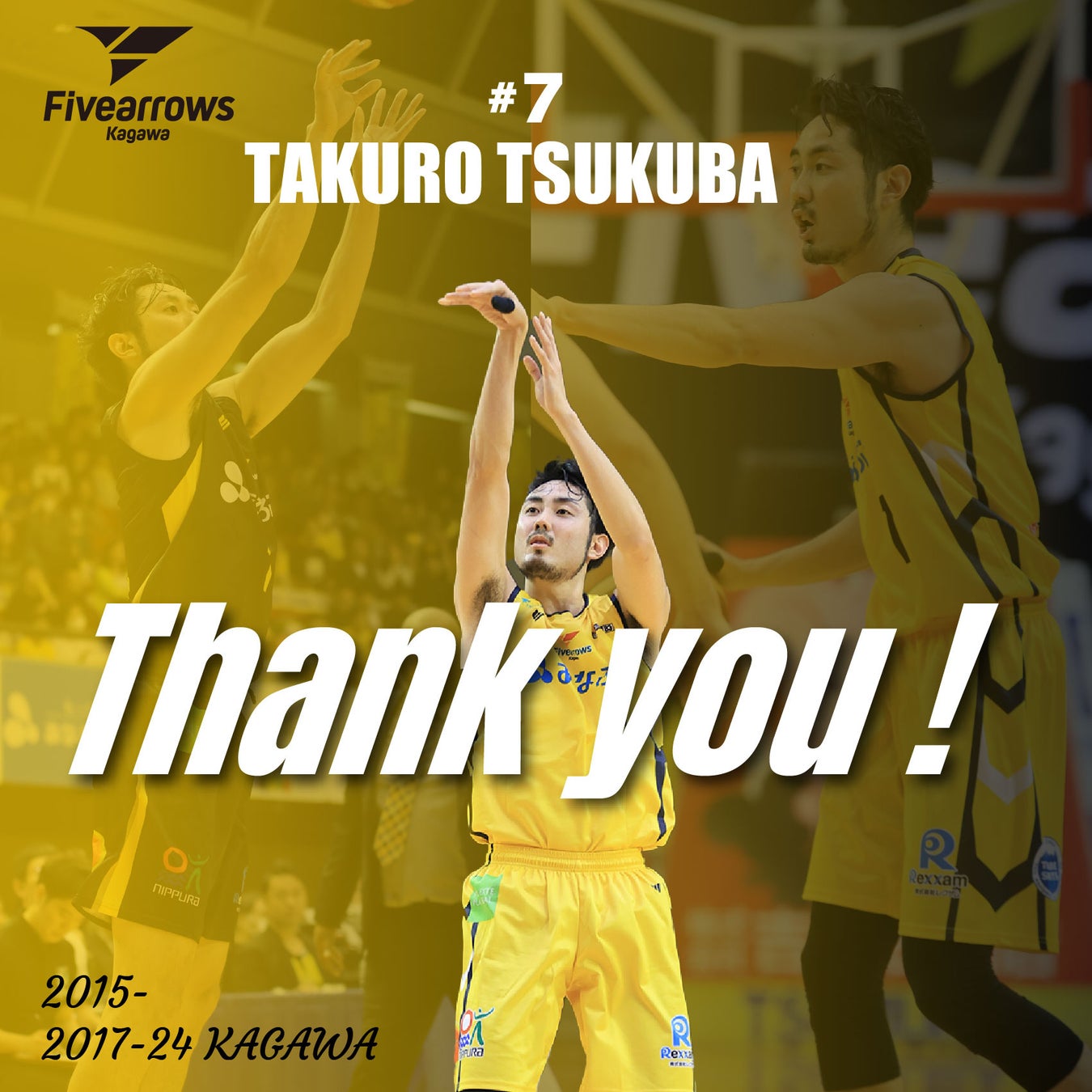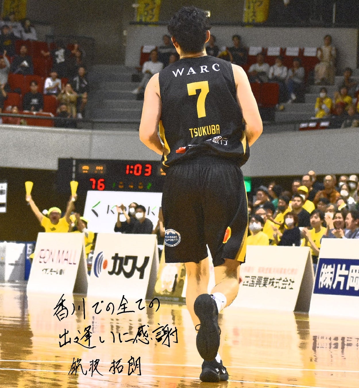 その中でも香川ファイブアローズでは7年間プレーさせて頂きました。チームメイト、コーチスタッフ陣、フロントスタッフの方々、スポンサーの方々、そして応援してくださったブースターの皆様のおかげでこの日を迎えることが出来ました。本当にありがとうございました。