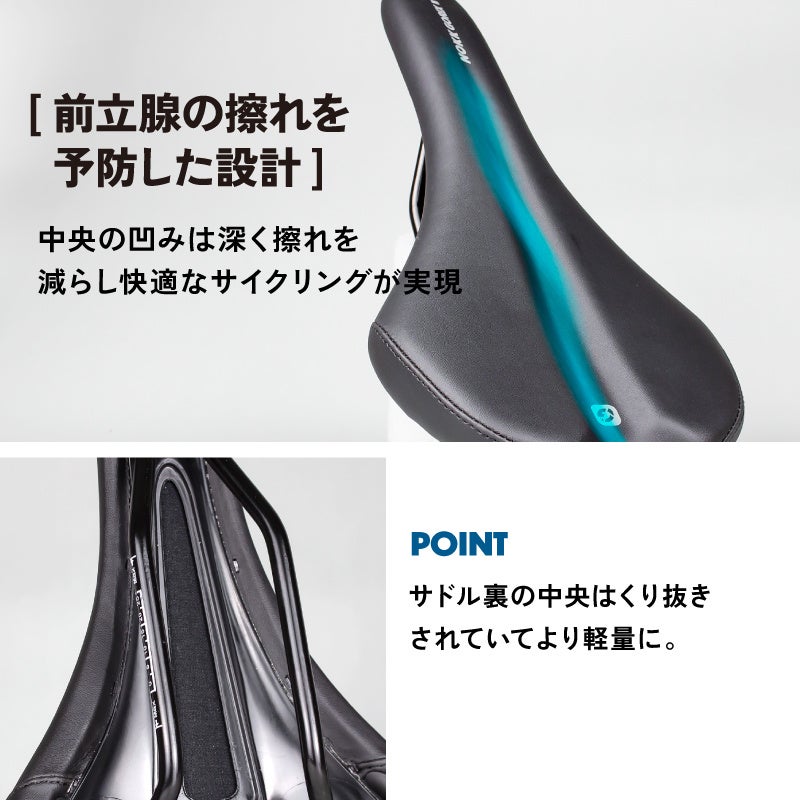 ・サドル裏側のセンター部分はくり抜きし軽量に、しなやかに