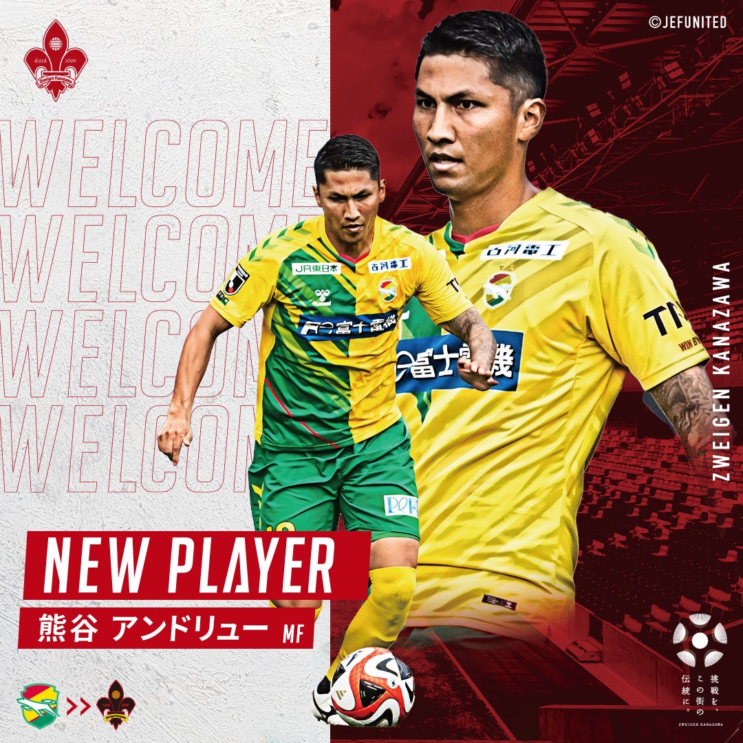 この度、ジェフユナイテッド市原・千葉より熊谷 アンドリュー選手が完全移籍にて加入することが決定しましたのでお知らせいたします。