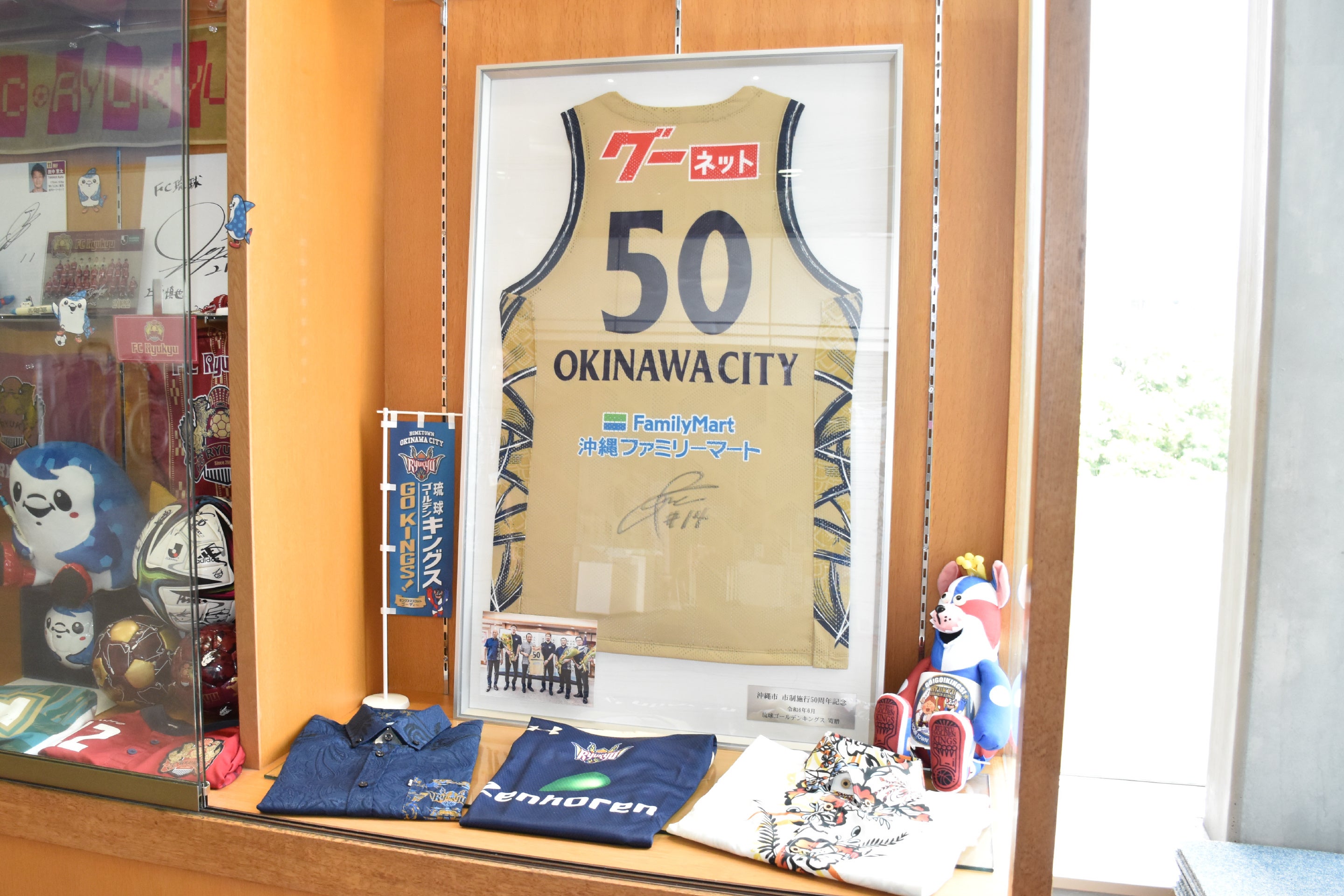 贈呈したユニフォームは本日7月9日(火)より、沖縄市役所1階のショーケースにて展示されます。