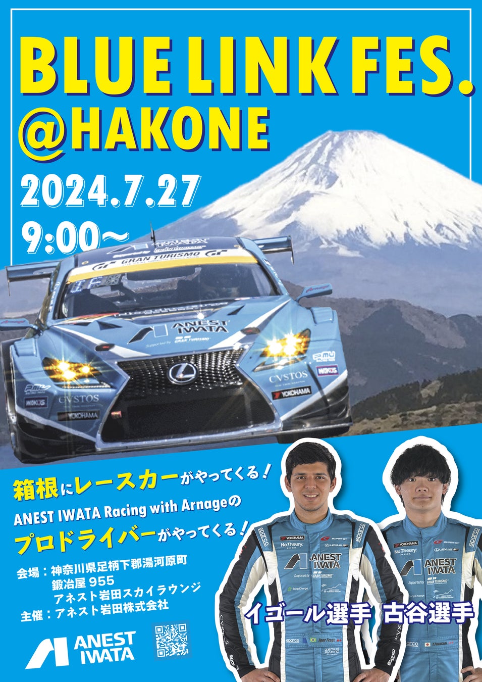 アネスト岩⽥株式会社(本社:神奈川県横浜市、代表取締役 社⻑執⾏役員 深瀬 真一、以下「当社」)は7月27日(土)に、当社がネーミングライツを取得している「アネスト岩田ターンパイク箱根」(以下「ターンパイク」)で「BLUE LINK FES.@HAKONE(ブルーリンクフェスアットハコネ、以下「BLUE LINK FES.」)」を開催いたします。