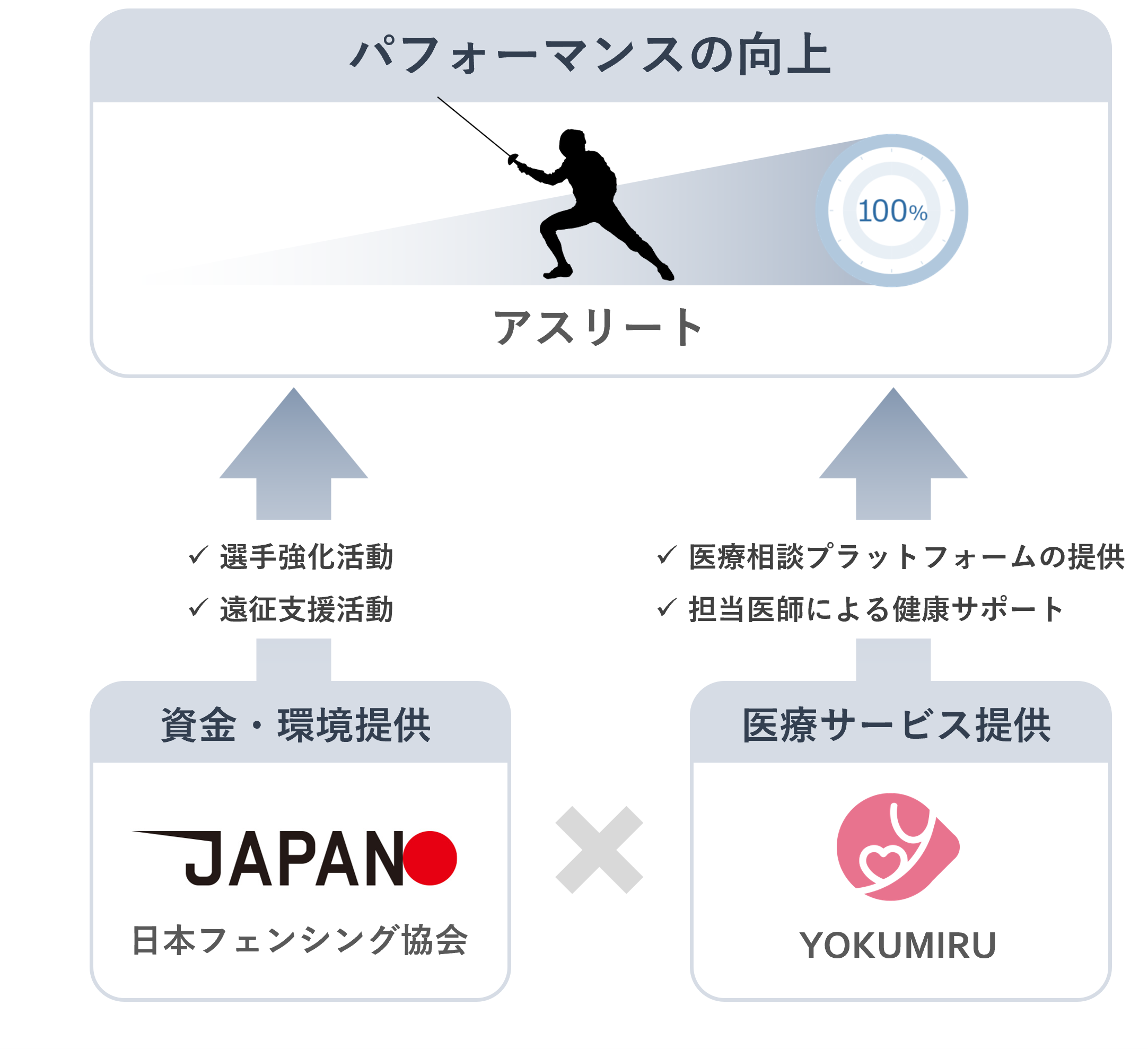 そこでヨクミルのプラットフォームを利用して、海外遠征中にもいつもの医師に相談できる環境を提供することで、アスリート、医師、日本フェンシング協会の「三方良し」の関係で、強力に選手をバックアップする体制ができると考え、今回の取り組みに至りました。日本フェンシング協会が掲げる「スポーツ会のロールモデル」となることで、世界で活躍するアスリートが競技に集中できる環境を構築したいとと考えています。