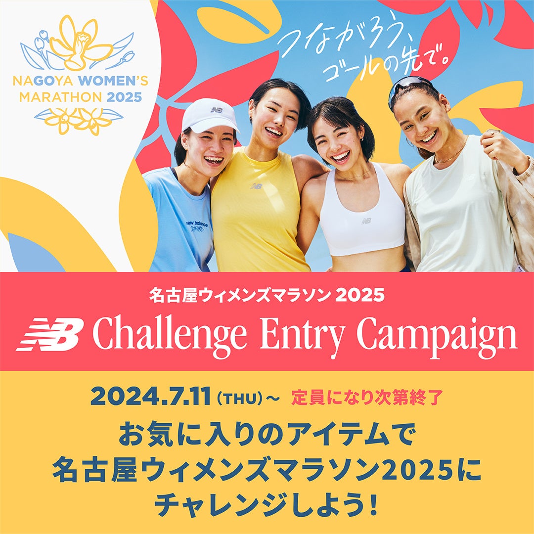 一般エントリーに先駆けて、「名古屋ウィメンズマラソン2025」の先行エントリー権を獲得できる「ニューバランスチャレンジエントリーキャンペーン」第1弾を7月11日(木)~7月25日(木)の期間限定でスタートします。