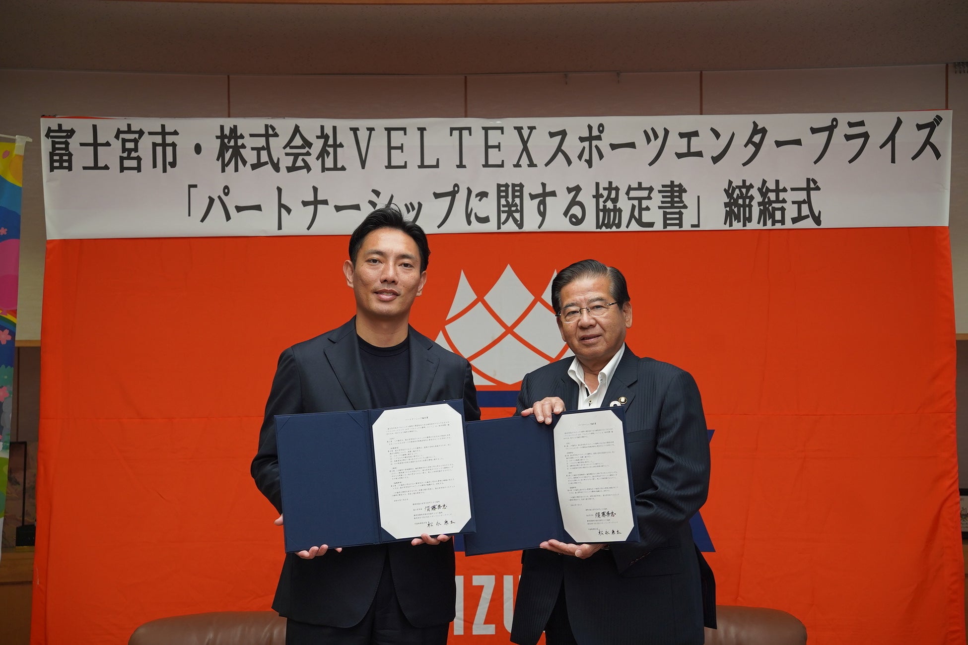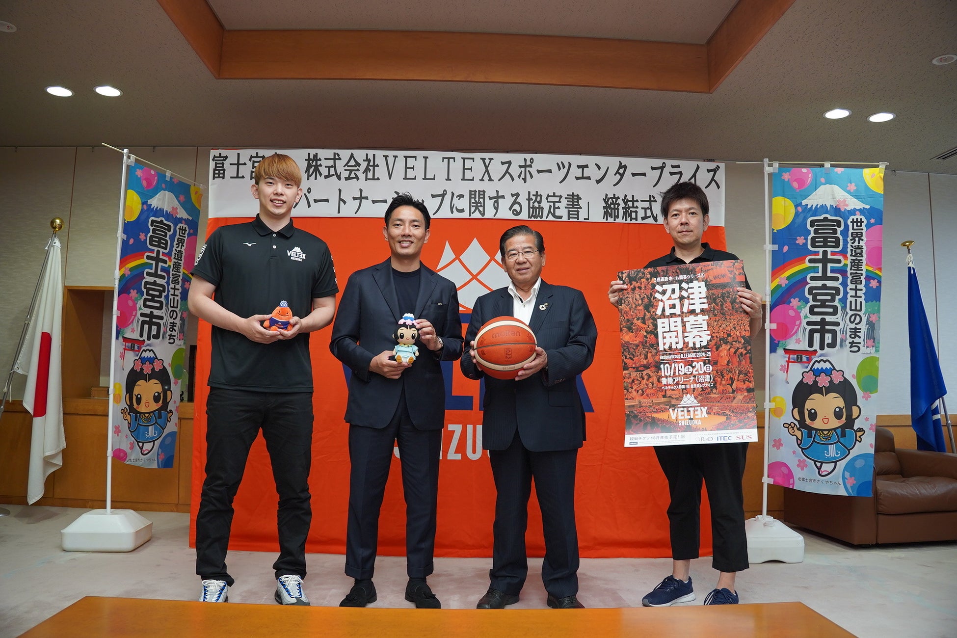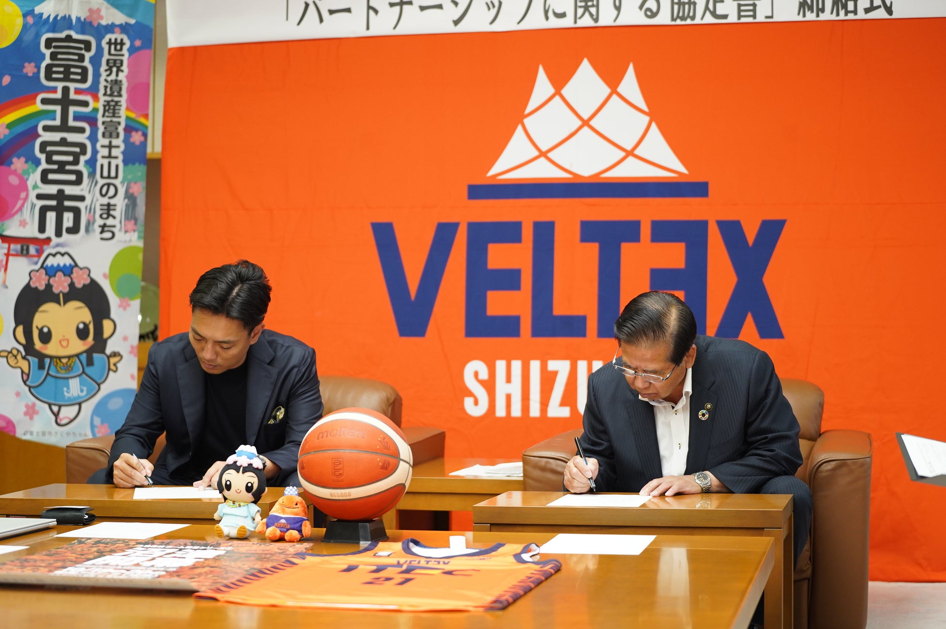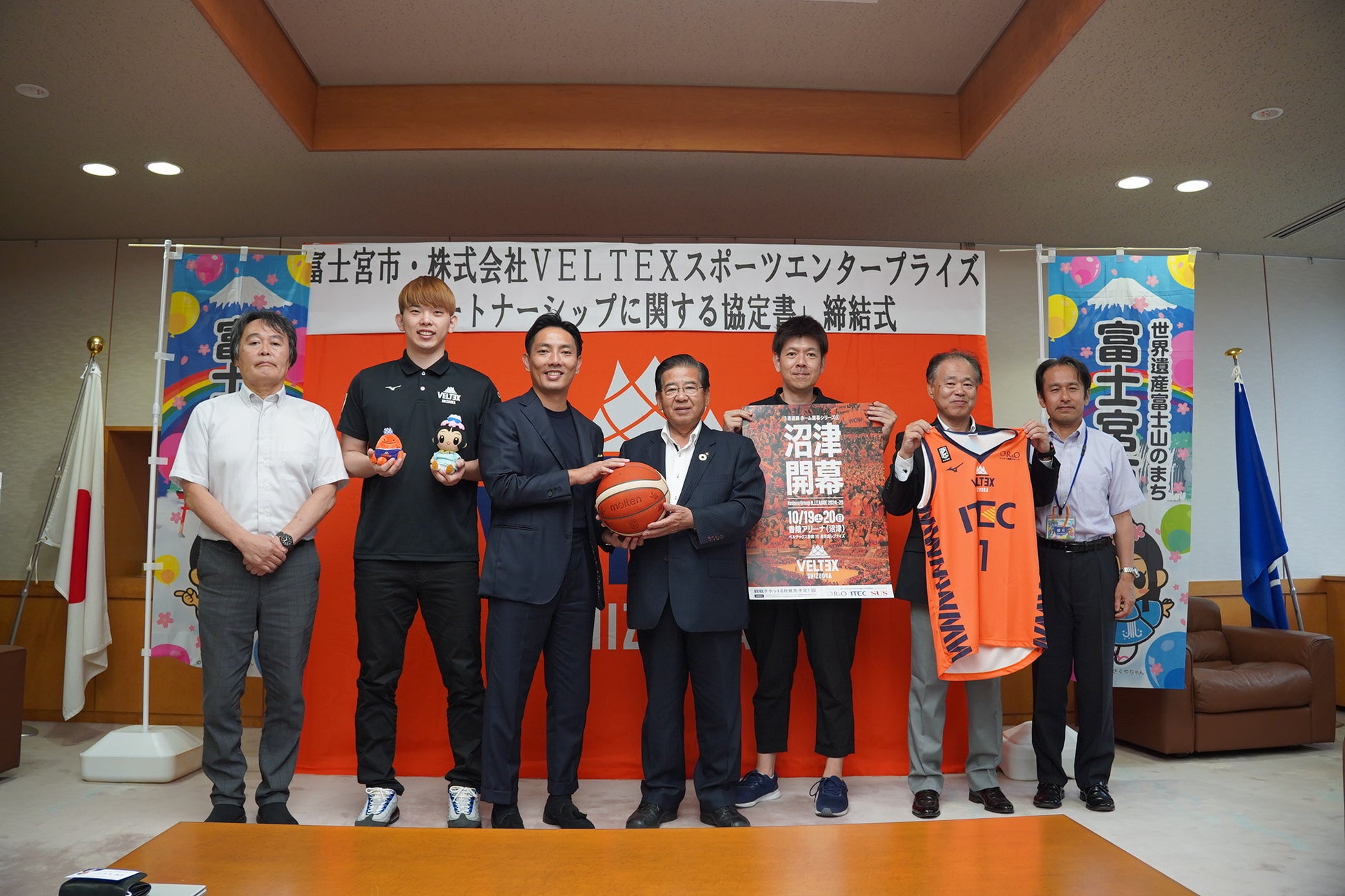 ベルテックス静岡は富士宮市とそれぞれの資源を活用することによるスポーツの推進及び地域活性化に寄与することを目的としたパートナーシップ協定を締結し7/9(火)富士宮市役所において締結式を執り行いました。