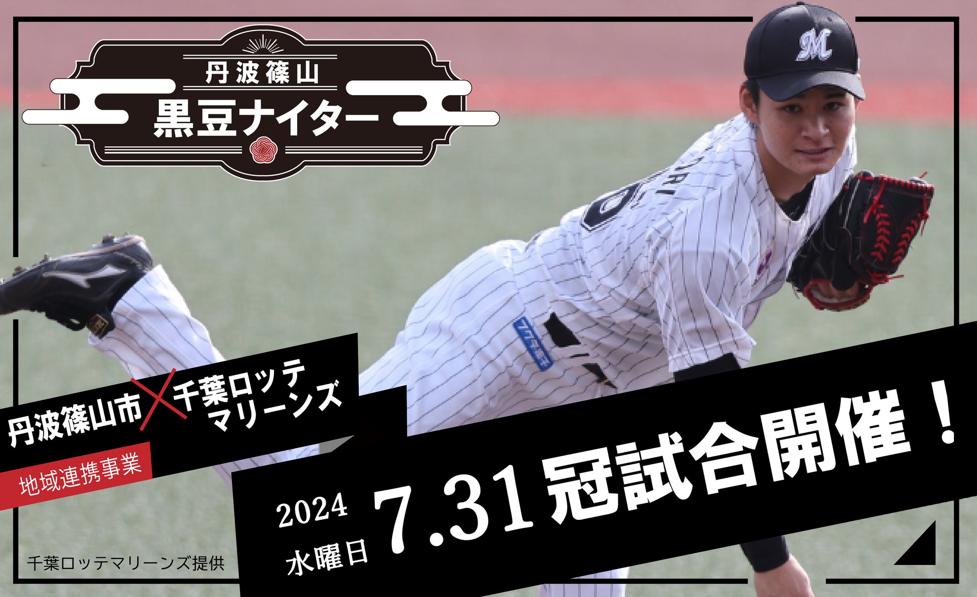 今年も中森俊介投手(篠山東中学校出身・丹波篠山ふるさと大使)と千葉ロッテマリーンズを応援する「丹波篠山黒豆ナイター」が2024年7月31日(水)に開催決定しました。