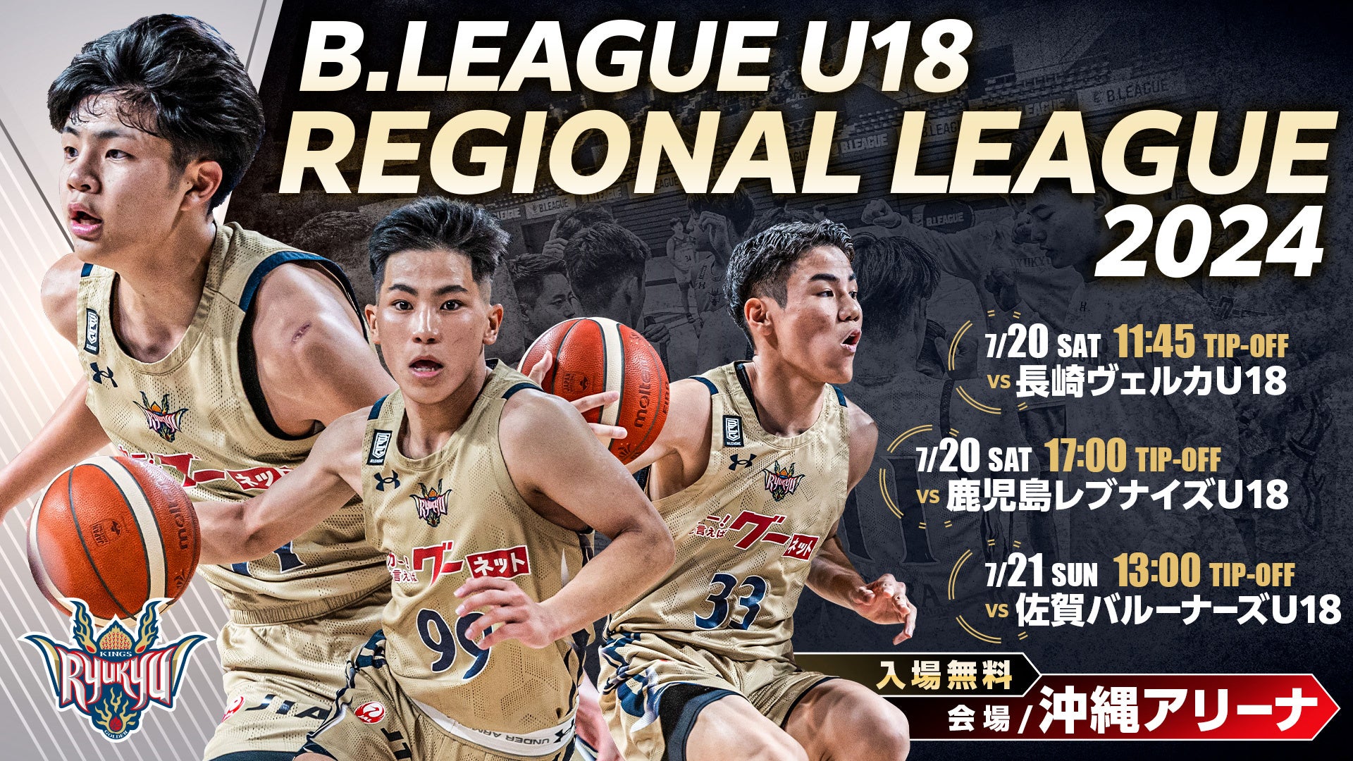 7月20日(土),21(日)に、キングスU18が出場する「B.LEAGUE U18 REGIONAL LEAGUE 2024」のホーム・沖縄アリーナで開催されます。