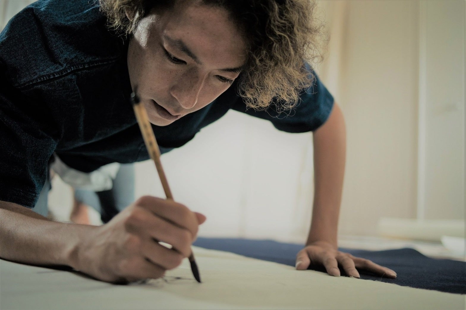 今大会も昨年に引き続きポスターなどのメインビジュアルと題字は、国内外で活躍する福岡市在住の墨絵・陶墨画アーティスト西元祐貴さんが=写真=が担当した。