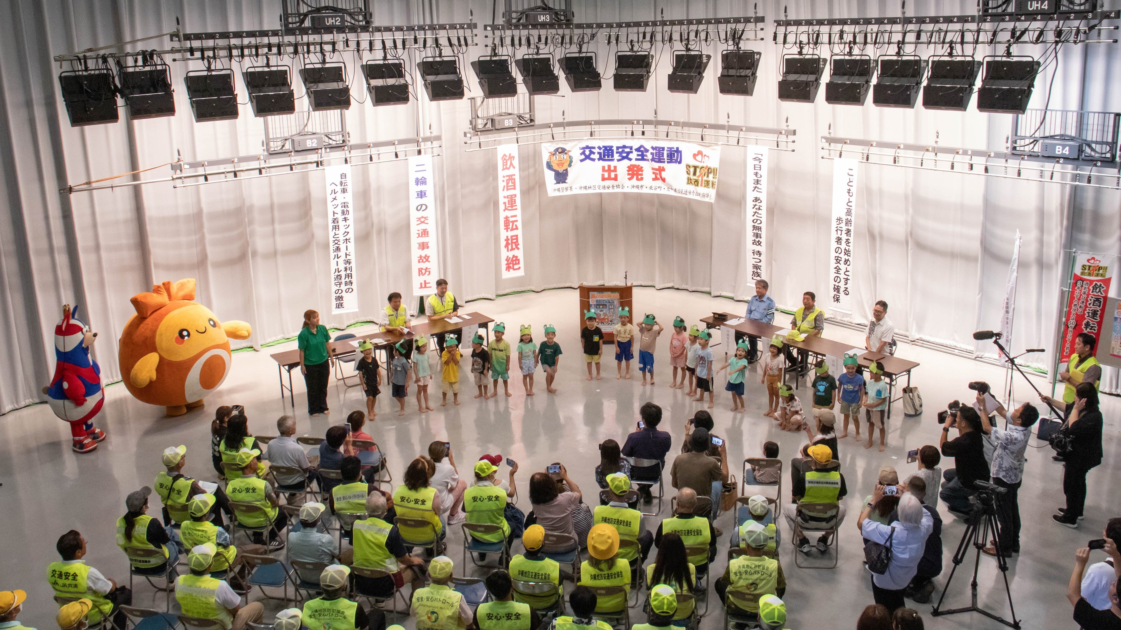 7月12日(金)に北谷町美浜メディアステーションで行われた「夏の交通安全県民運動出発式」にゴーディーが参加いたしました。