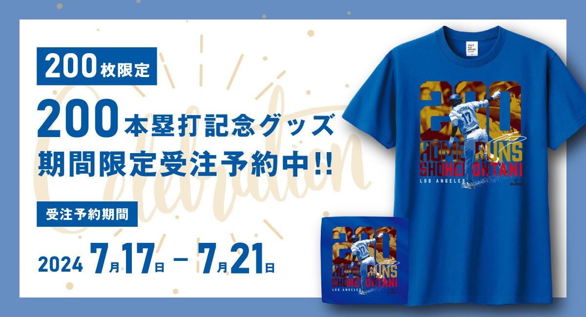 ロサンゼルス・ドジャースの大谷翔平選手が、自らの日本人最多を更新するメジャー通算200本塁打を達成したことを記念し、メモリアルデザイングッズの受注予約を開始いたしました。