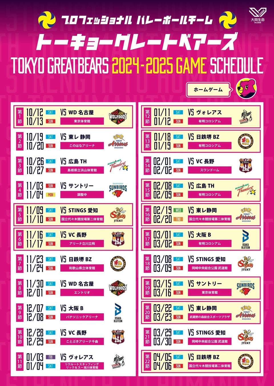 このたび、2024-2025 大同生命 SV.LEAGUE MENのゲームスケジュールが決まりましたので、お知らせいたします。