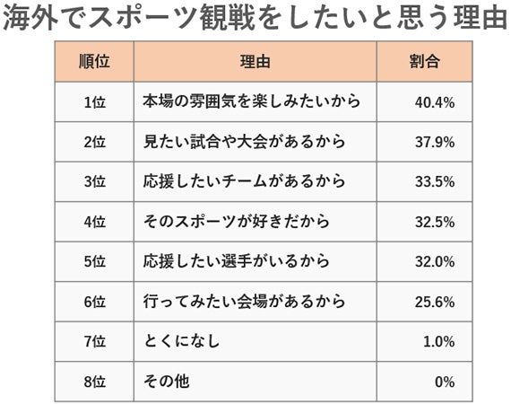 「本場の雰囲気を楽しみたいから」が40.4%と最も多く、僅差で「見たい試合や大会があるから」(37.9%)が続いています。