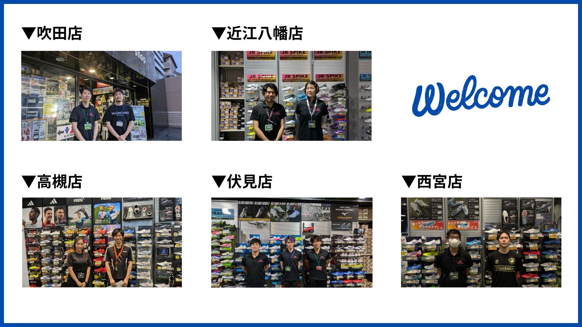 伏見店、高槻店、吹田店、西宮店、近江八幡店