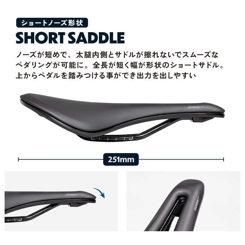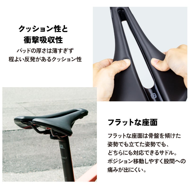 ポジションが作りやすいとされるショートノーズ形状で、人間工学に基づいたカットアウトは軟部組織への圧力を大きく緩和しペダリングがスムーズにします。