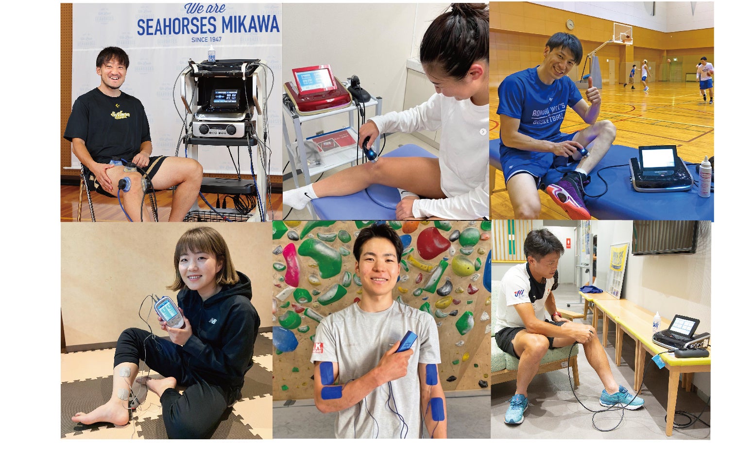 現在では医療用から美容、ホームケアまで多くの分野で弊社の機器が使用されていますが、スポーツ分野においては治療目的以外にも競技前のコンディショニングに欠かせない機器として多くの団体・チームで導入されています。
