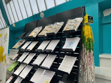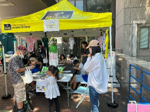 第9ステージのスタート/フィニッシュ地点付近にあるプレスセンターにおいて、世界各国から訪れている取材陣に対し、大会ステッカーや英語で制作した大会のチラシを配布するなど大会をプロモーションしました。