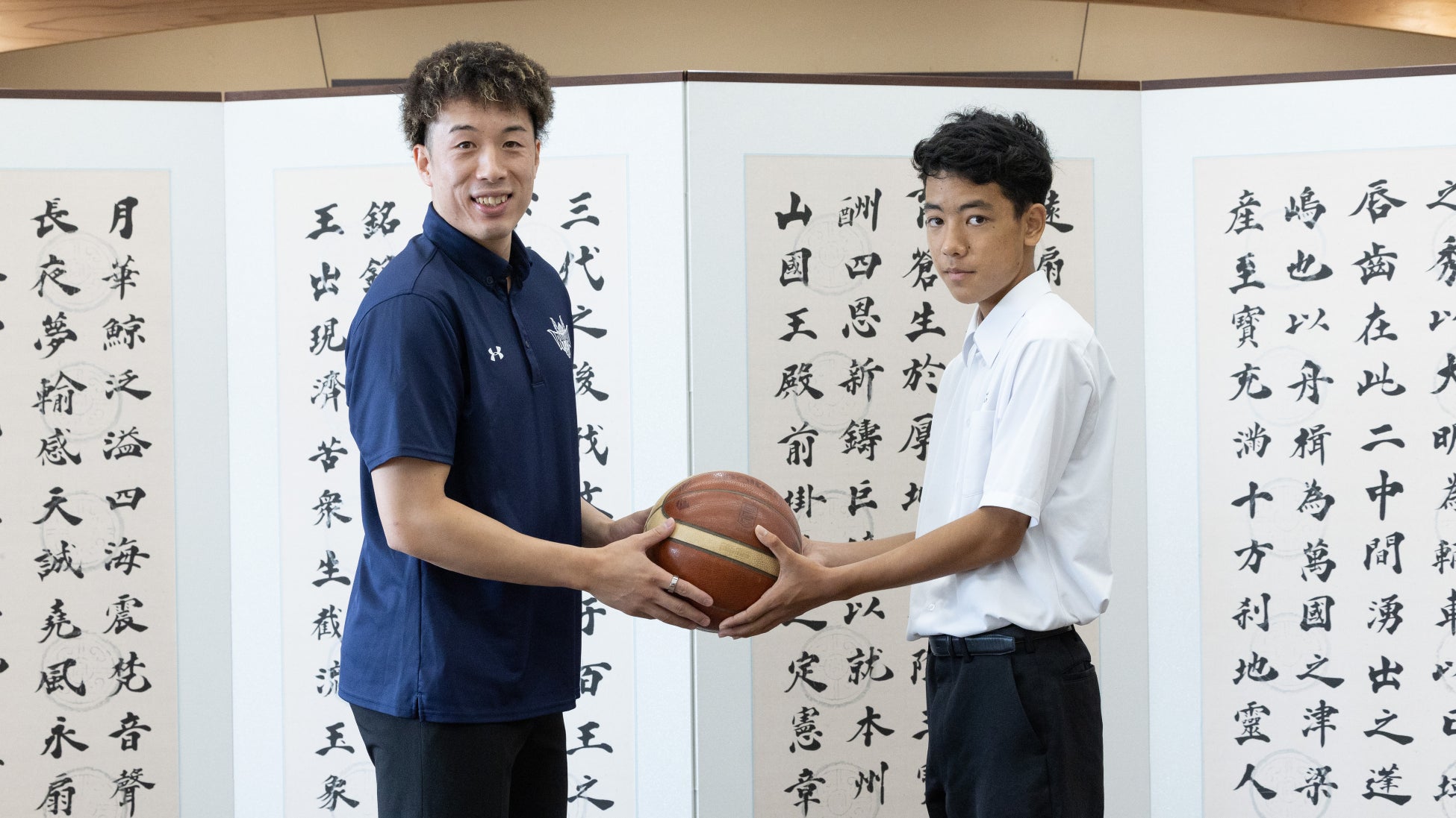 琉球ゴールデンキングスの皆さん、僕たち沖縄市の中学生のためにバスケットボールを寄贈していただきありがとうございます。