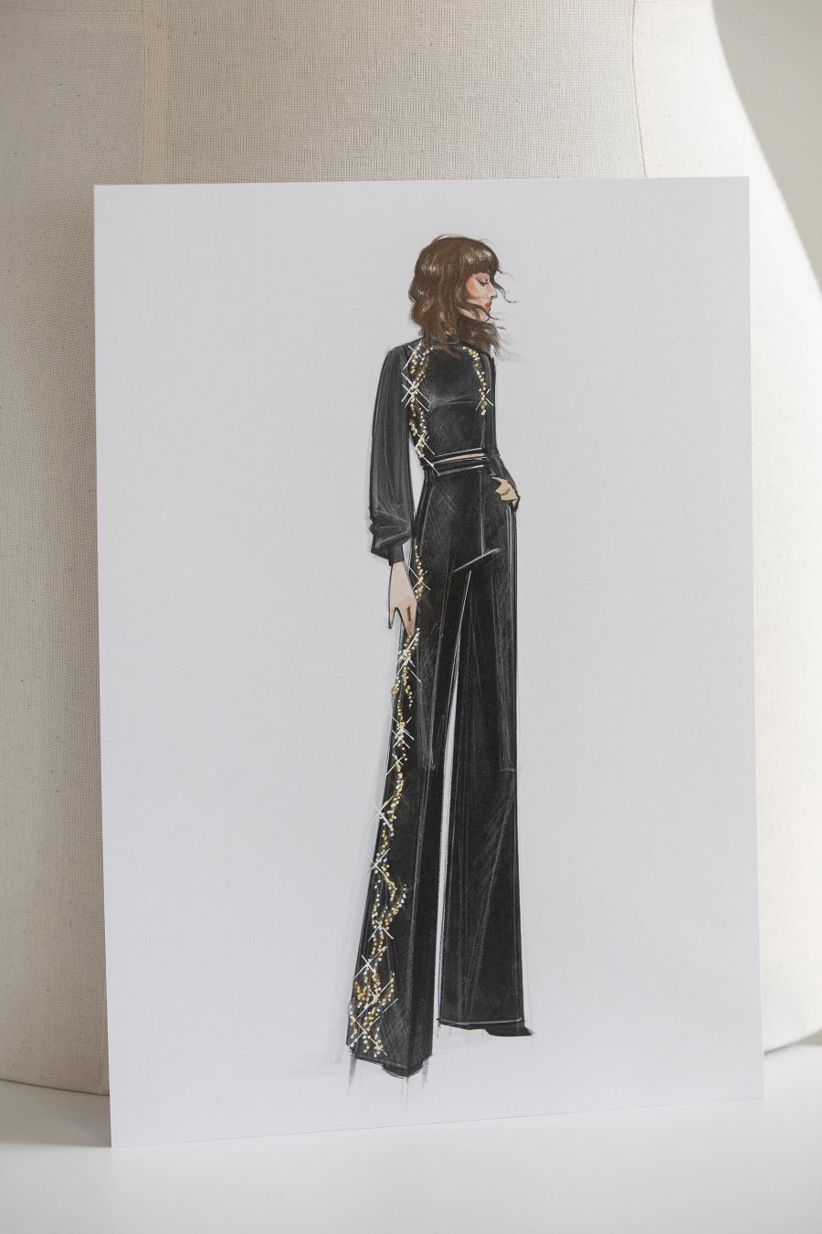 パリ2024オリンピック開会式で、ジュリエット・アルマネは、ジョン・レノンの非常に象徴的な曲『イマジン』を歌いました。セーヌ川のボートの上に立つジュリエット・アルマネはマリア・グラツィア・キウリがディオール アトリエと刺繍職人のクララ・ダギャンとのコラボレーションで制作した衣装で登場しました。ジョン・レノンの象徴的なシグネチャーシルエットを再考したこの特別なクリエイションは、ブラックのパテントコーティングがほどこされたキャンバス地のトップスとパンツで構成され、独創的なプログラミングシステムによってライトアップされた多数のファセット スピン トップ ビーズが暗闇を照らす希望の輝きを詩的に表現しました。ディオールアトリエとの革新的な対話から生まれた、クララ・ダギャンならではのサプライズ作品は、卓越性、デザイン、革新性を融合させた錬金術のようなパフォーマティブアートだったと言えるでしょう。