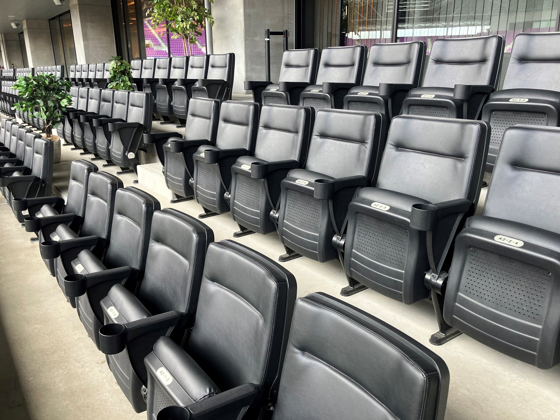 サンガスタジアム by KYOCERAのVIPラウンジ専用のテラス席を一部レイアウトを変更し、「サンガプレミアムシート」としてご用意している席です。一般の席より幅広で、前の席との間隔も広く、かつ肘掛けがついたレザー製シートのため、ワンランク上のプレミアムな観戦空間となります。ピッチも近く、両チームのベンチ付近の動きもよく見えるため、スタジアム観戦ならではの臨場感を快適な空間で味わえる座席になっております。
