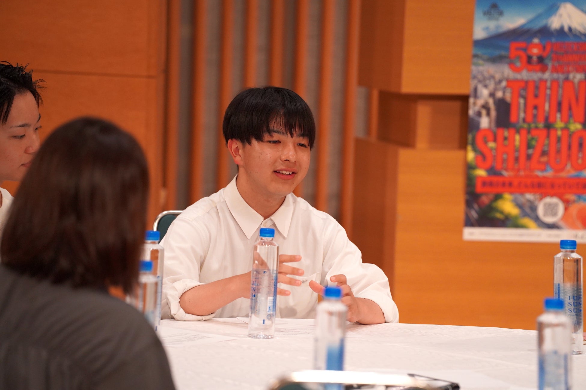 「静岡についてこんなに話すことが今までなくとても楽しく参加できました。若い高校生も一緒でしたが、思っていることは一緒なんだと改めて感じることもできいい機会でした。私のグループのテーマは企業でしたが、スポーツをどう活かしていくかを考えました。若い世代が楽しく静岡で働ける環境があって欲しいと思います。とても楽しい機会に参加させていただきありがとうございました。」