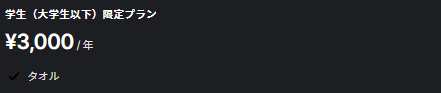 学生(大学生以下)限定プラン 3,000円/年間