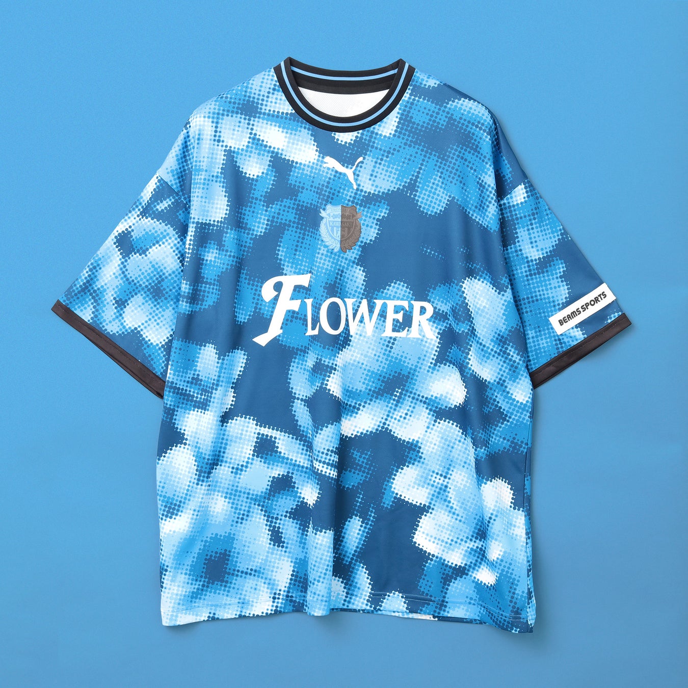 川崎フロンターレのオフィシャルロゴからアレンジしたFLOWERロゴ、PUMAキャット、〈BEAMS SPORTS〉ロゴを随所に配置しました。