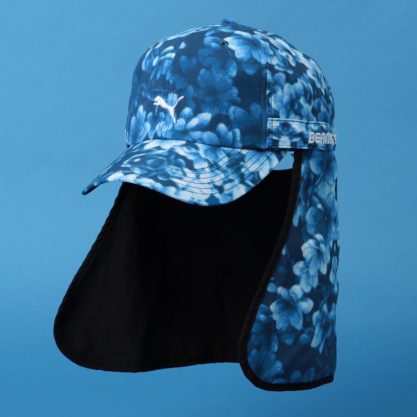 『FLOWER FOOTBALL シャツ』と同柄のサンシェード付きキャップ。