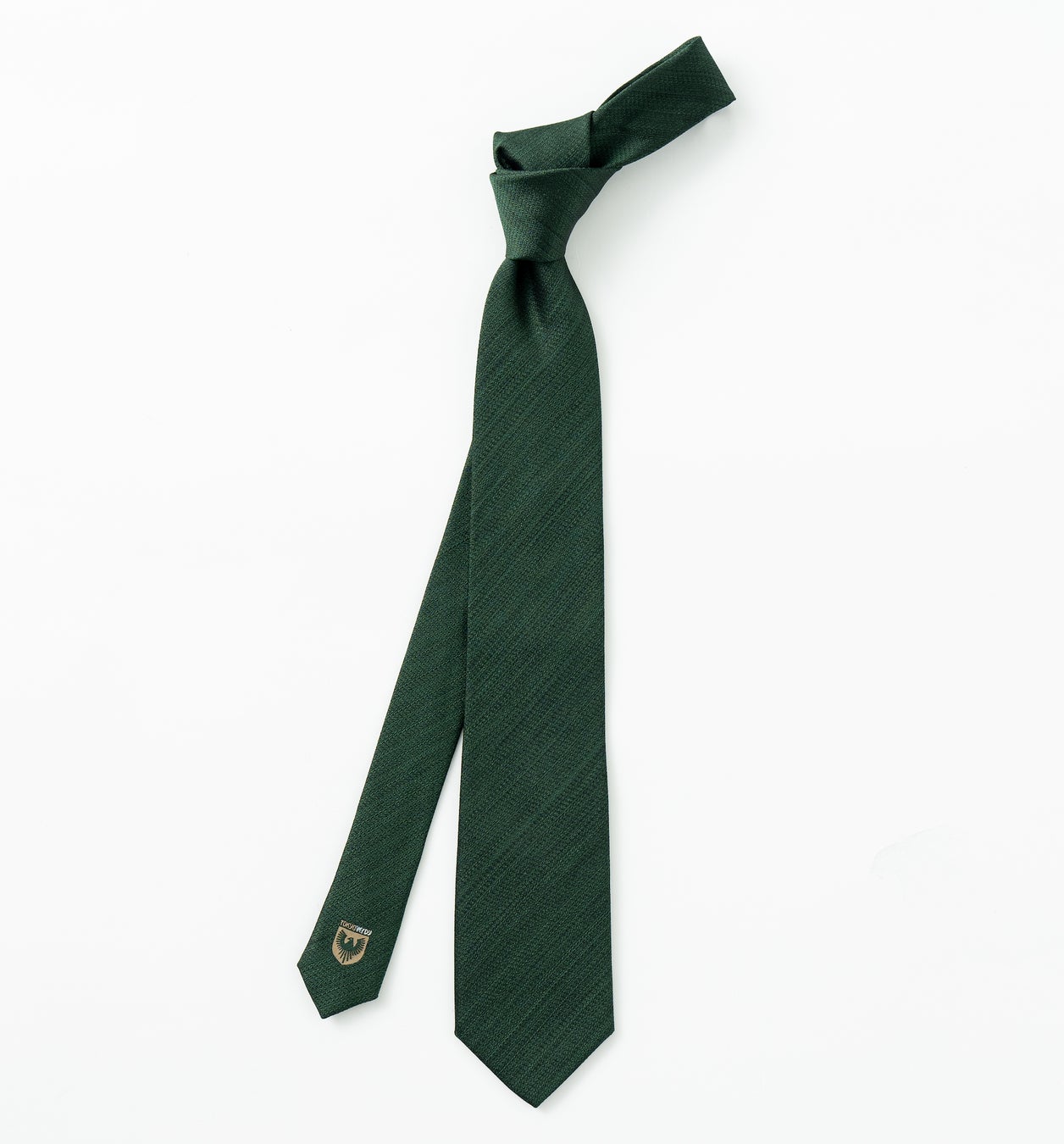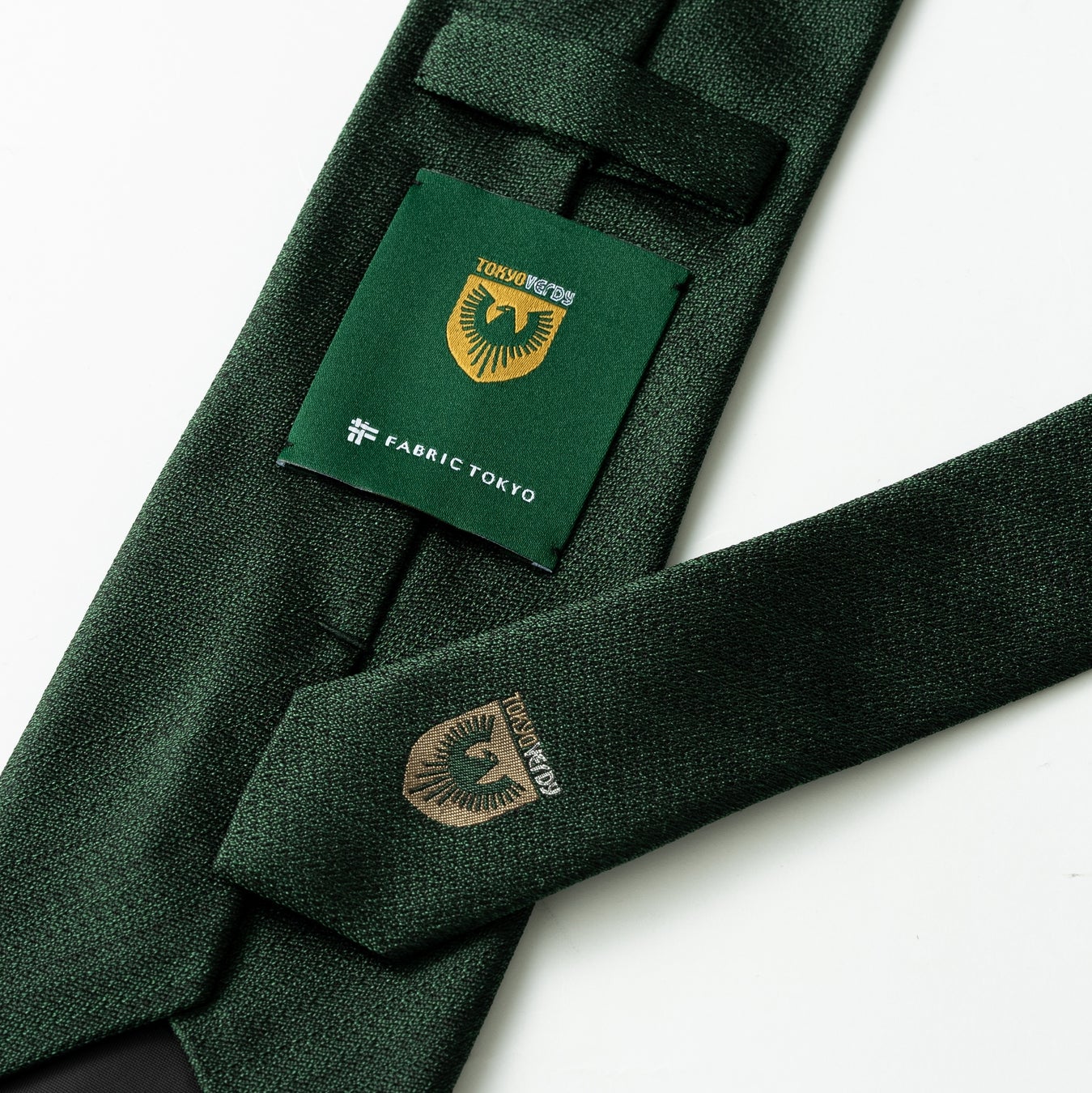 小剣に忠実に再現されたヴェルディエンブレム、セットアップと同様のコラボネームが付属したネクタイ。『TOKYO VERDY UNITE』とのコーディネートを前提に、控えめな光沢感と素材感のある仕上がりです。