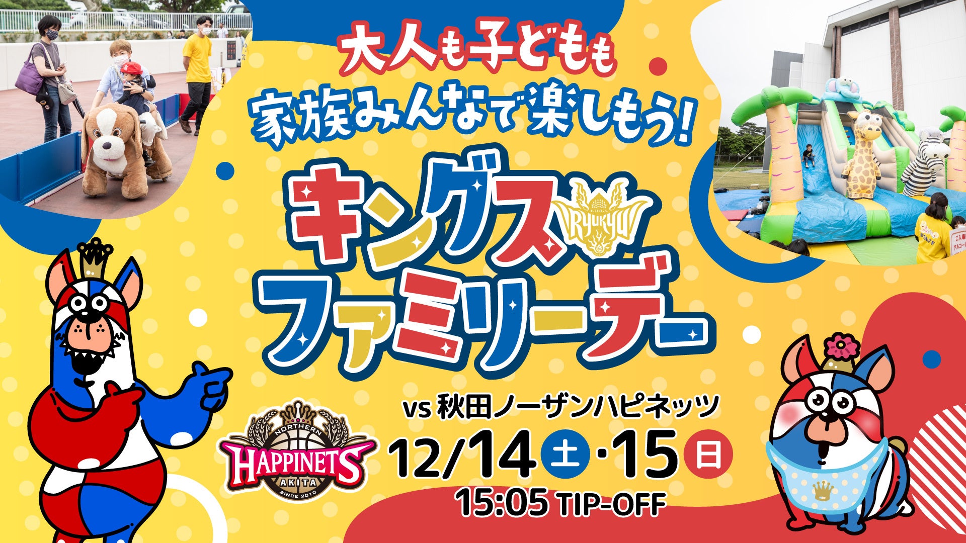 12月14日(土),15日(日)秋田ノーザンハピネッツ戦は、大人も子どもも家族みんなで楽しめるイベントが盛りだくさんのキングスファミリーデー!