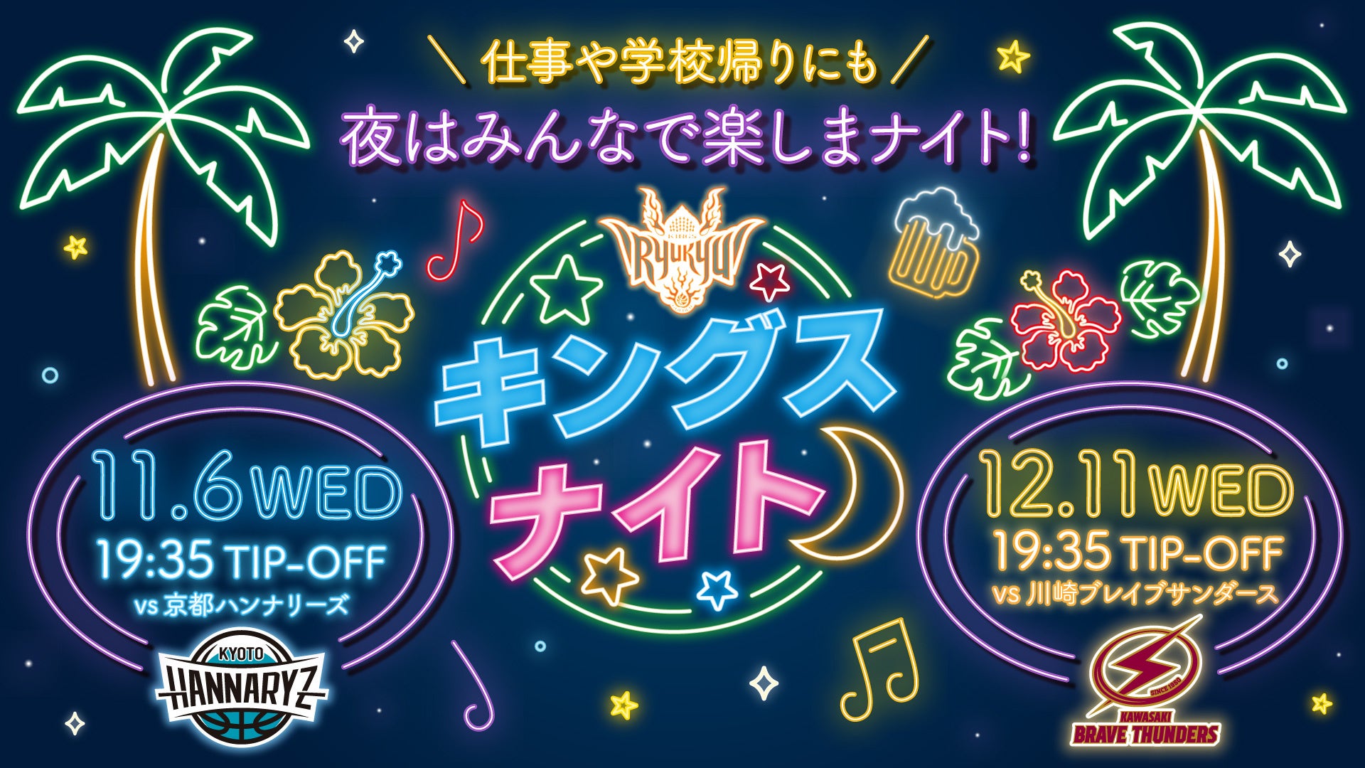 11月6日(水)京都ハンナリーズ戦、12月11日(水)川崎ブレイブサンダース戦はキングスナイト!