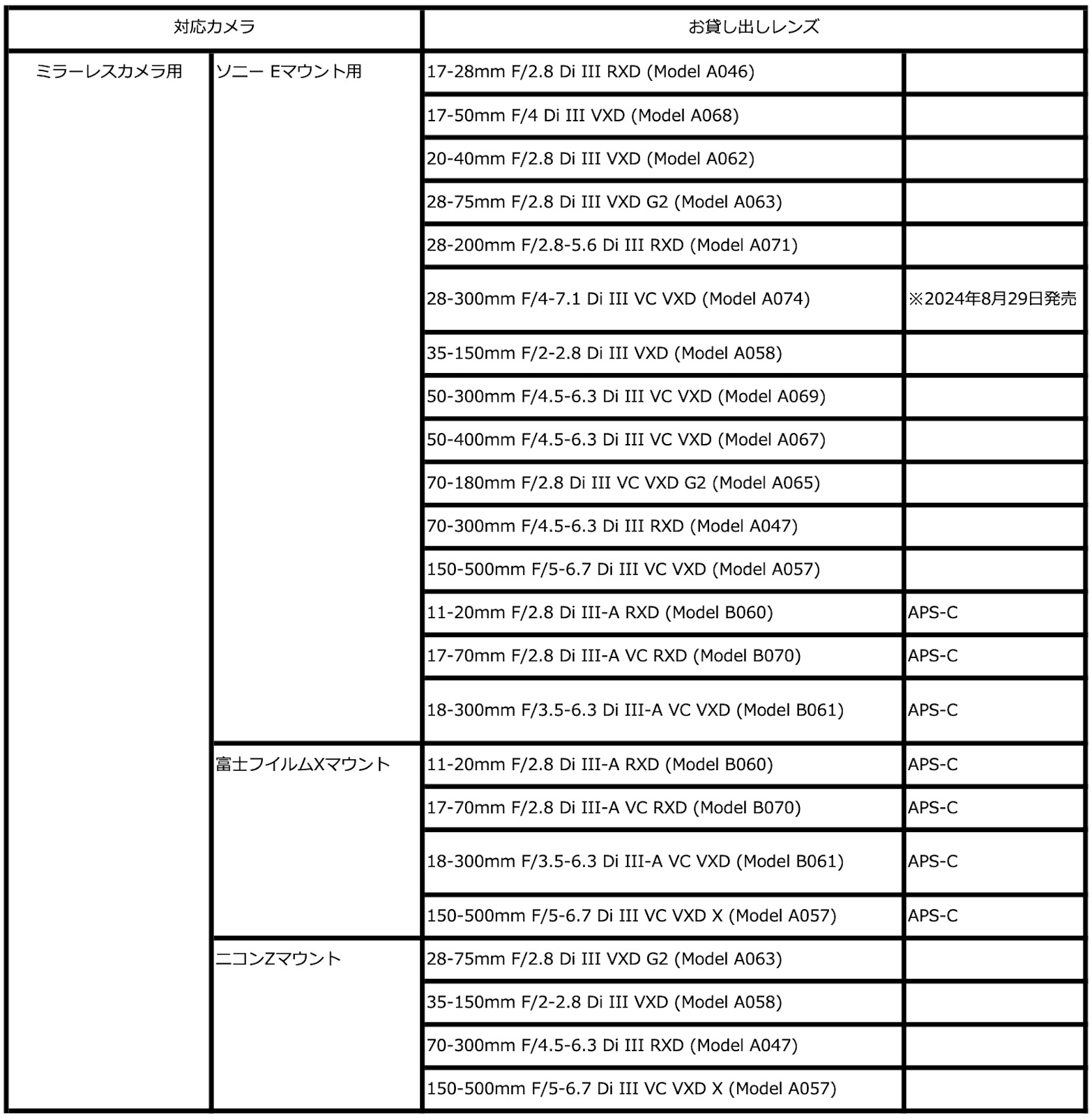 ・タムロンレンズの貸出しは先着順となります。貸出し機種、対応マウント、数量には限りがございます。ご希望のレンズがない場合もございますので、予めご了承ください。