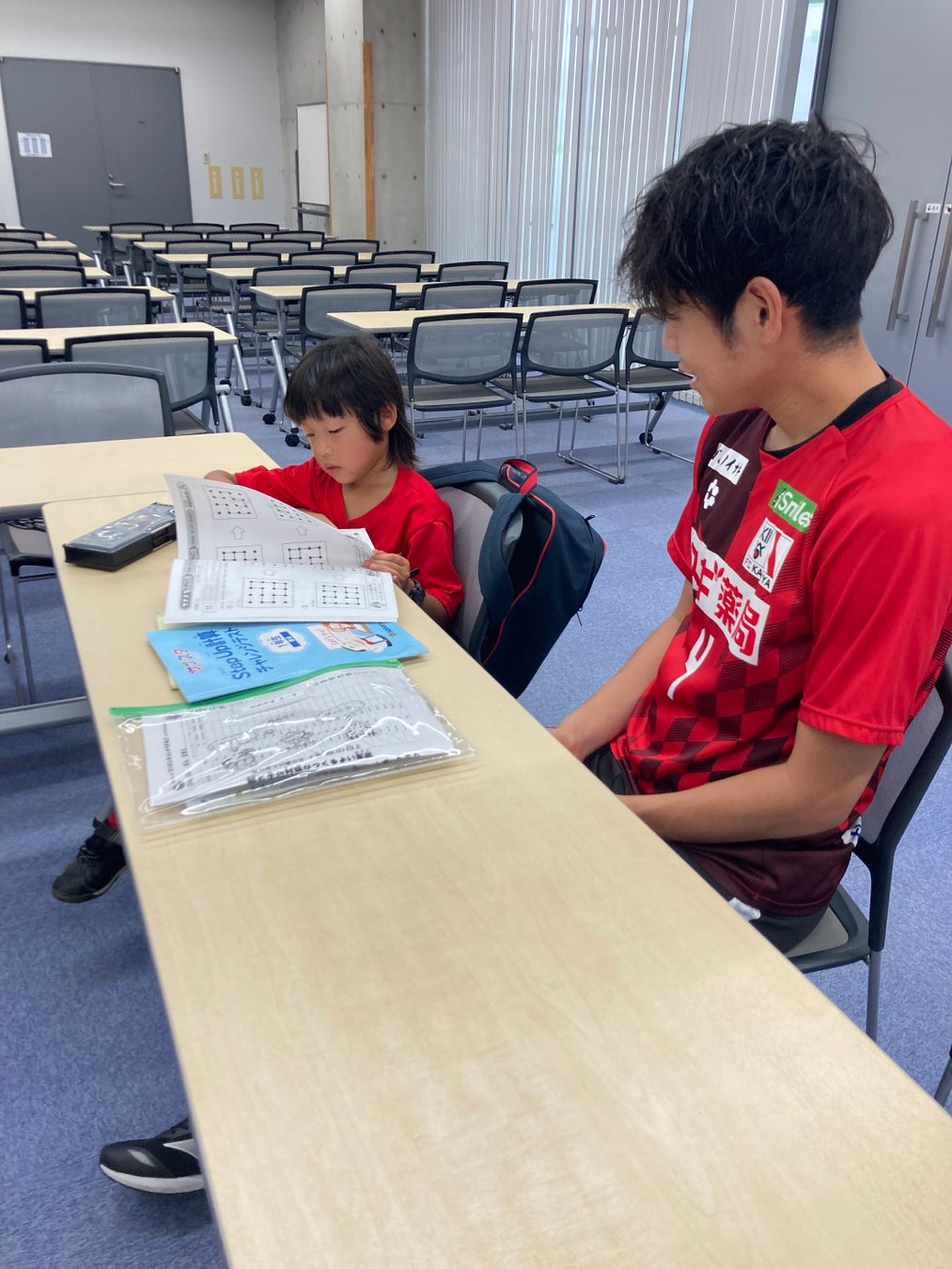 8月10日(土)に行なわれたホームゲーム前にウィングアリーナ刈谷にて佐々木宏樹選手と山本伊織選手が子どもを対象に夏休みの宿題を一緒に取り組みました。