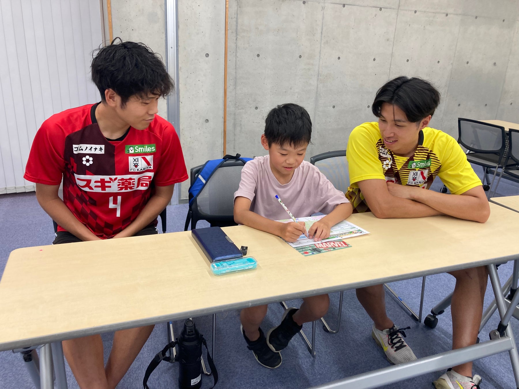 FC刈谷の選手が子どもたちの夏休みの宿題に取り組み 勉強をアシスト