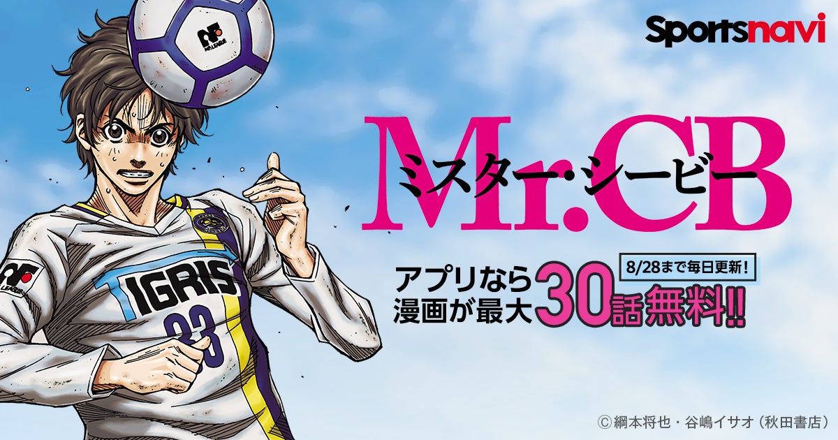 スポーツナビは、人気サッカー漫画「Mr.CB」を、秋田書店の協力を得て2024年9月8日(日)までの期間限定で無料配信します。毎日2話ずつ公開され、スポーツナビアプリなら合計30話を無料で楽しめます。