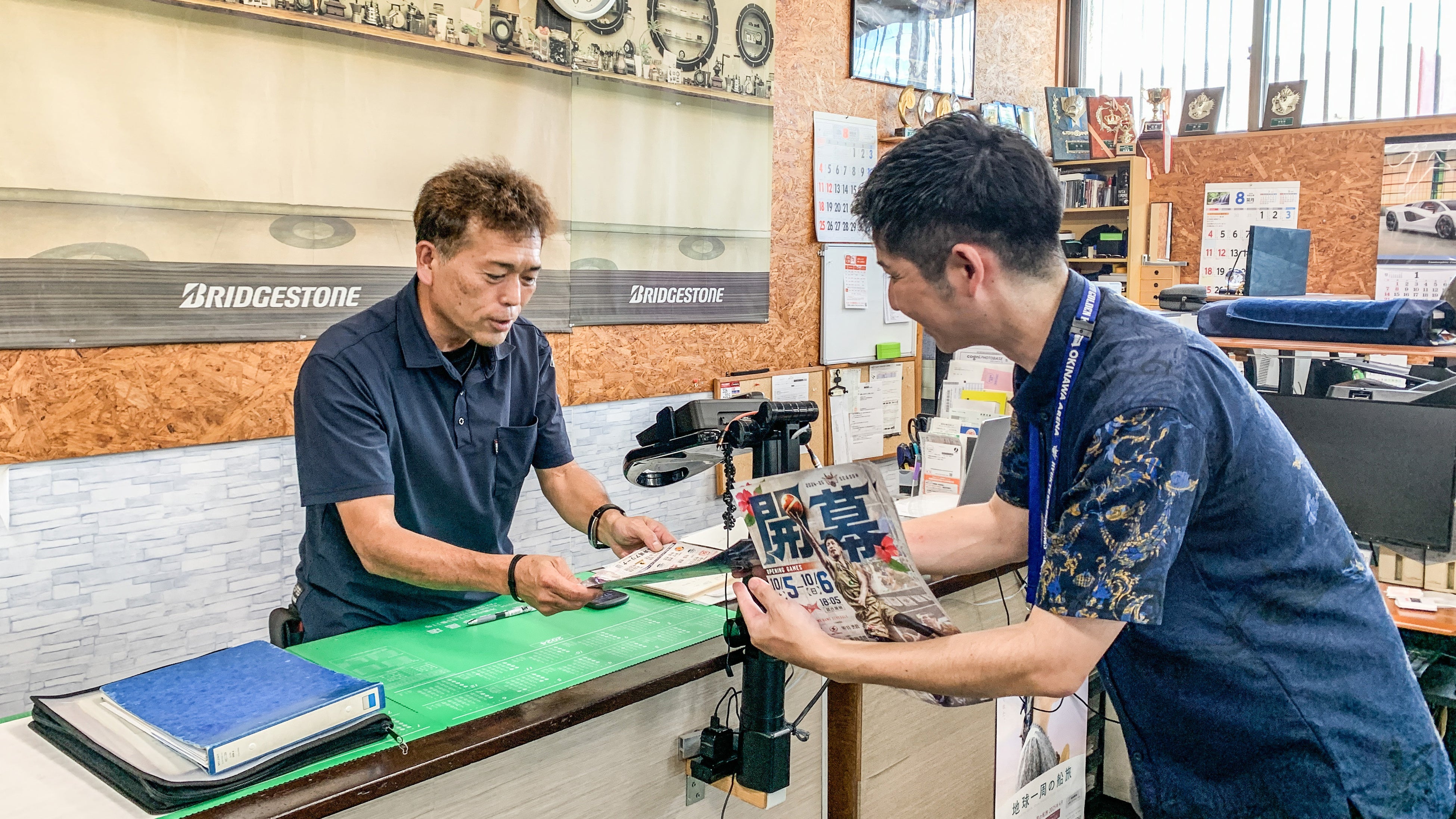 8月13日(火)に、キングスの社員が沖縄市の山内地区・美里地区・宮里地区・コザ商店街を中心に合計256店舗へポスターを配布しました。